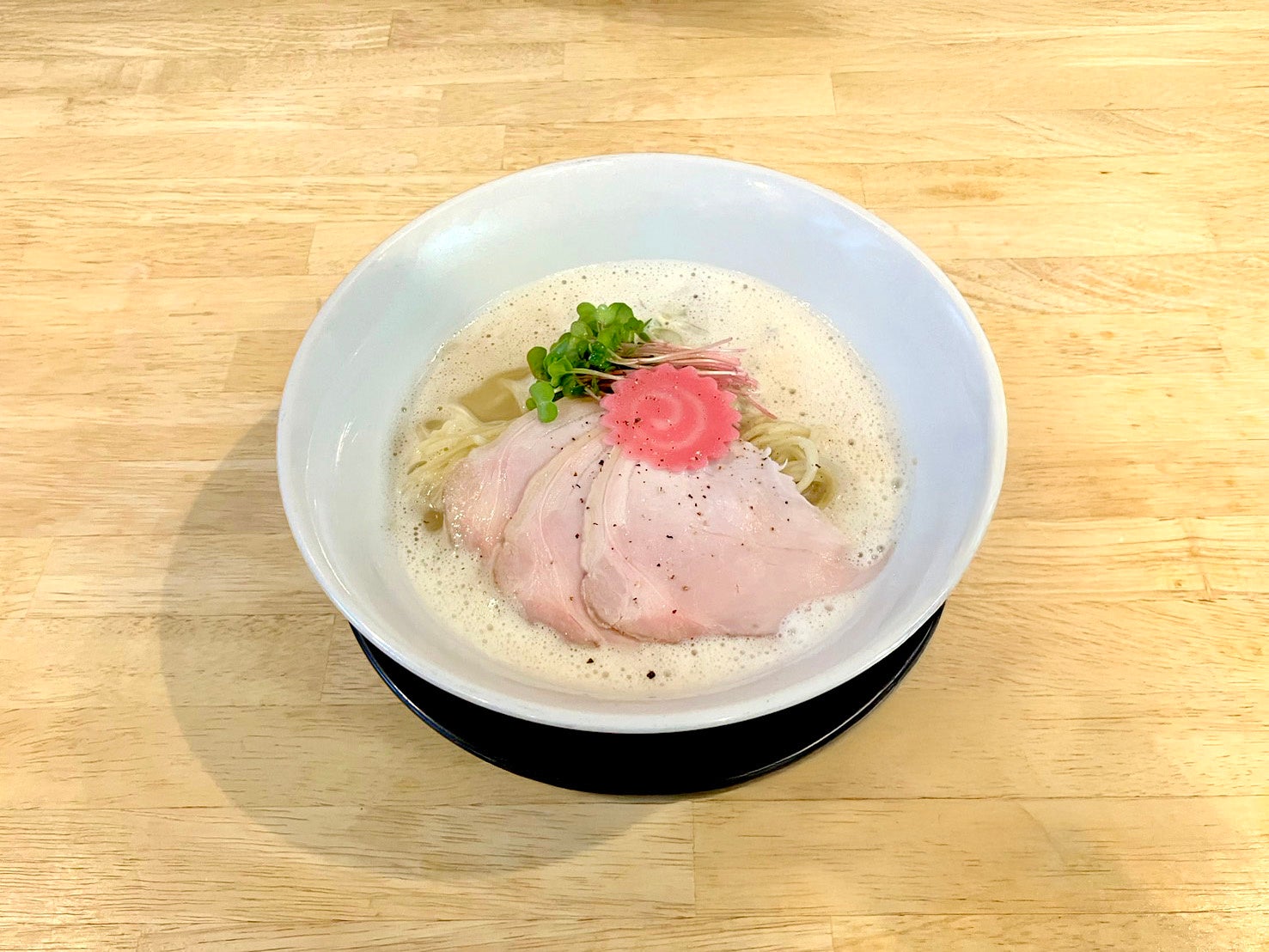 食べログ点数3.71※、「食べログ ラーメン WEST 百名店」に4年連続、「食べログ ラーメン OSAKA 百名店」に2年連続で選出されている大阪・福島の人気店。あさりと鯛出汁、香味野菜でとった白湯スープをエスプーマ(泡)仕立てにした「濃厚鯛塩ラーメン」が看板。クリーミーでコク深いスープと歯切れ良いプリッとした食感の平打ちストレート麺が絶妙に絡み、しっとりとして旨みの濃いレアチャーシューとも相性抜群です。他に、鯖出汁を使った中華そばや混ぜそば、季節限定麺などを展開。