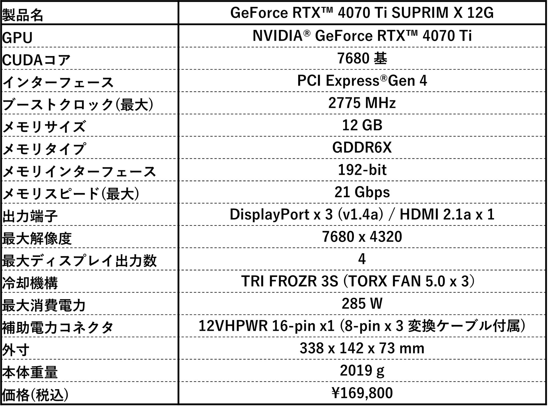 ■GeForce RTX™ 4070 Ti SUPRIM X 12G