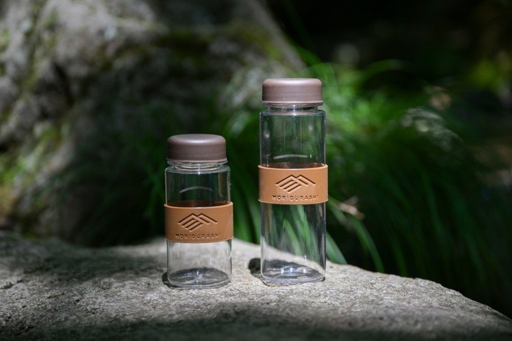蓋とストッパー部分には、飲食店などで大量廃棄されているコーヒー粕を一定使用し、プラスチック使用量を削減したエコなクリアボトルです。ボトルスリーブはCO2を固めて作ったものです。森林が持つ水源涵養機能の中に「水質の浄化機能」があります。森林土壌を水が通る過程で、リンや窒素などの物質を土や植物が吸収する一方で、土壌中のミネラル成分が適度に溶け出すことによって、おいしい水を作り出します。“蓼科の水道水はおいしい”という声を聞きますが、これは蓼科の森が生み出した水だからです。ボトルに水を詰めて、トレッキングコースへ出かけて、蓼科の森の恵みを堪能してください。