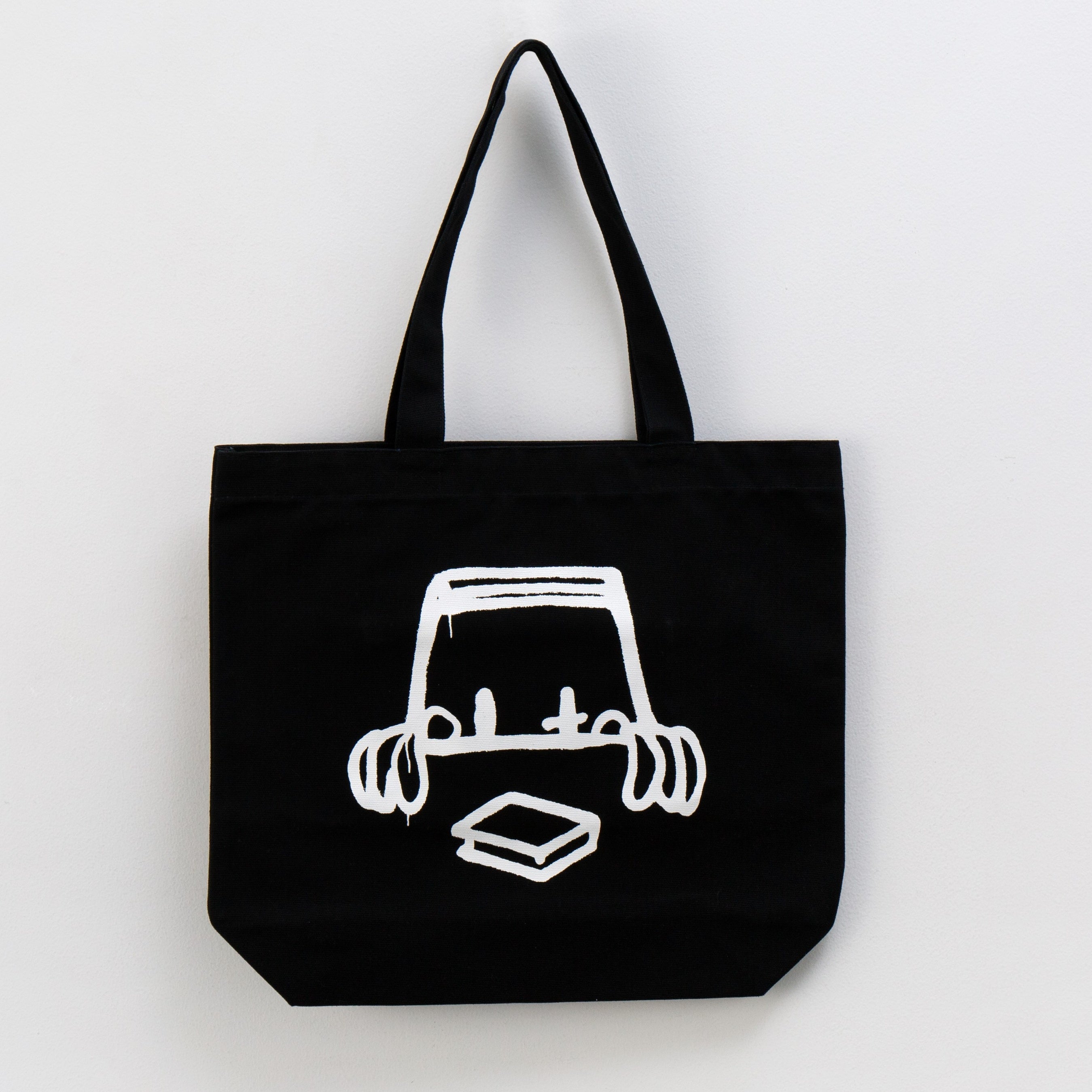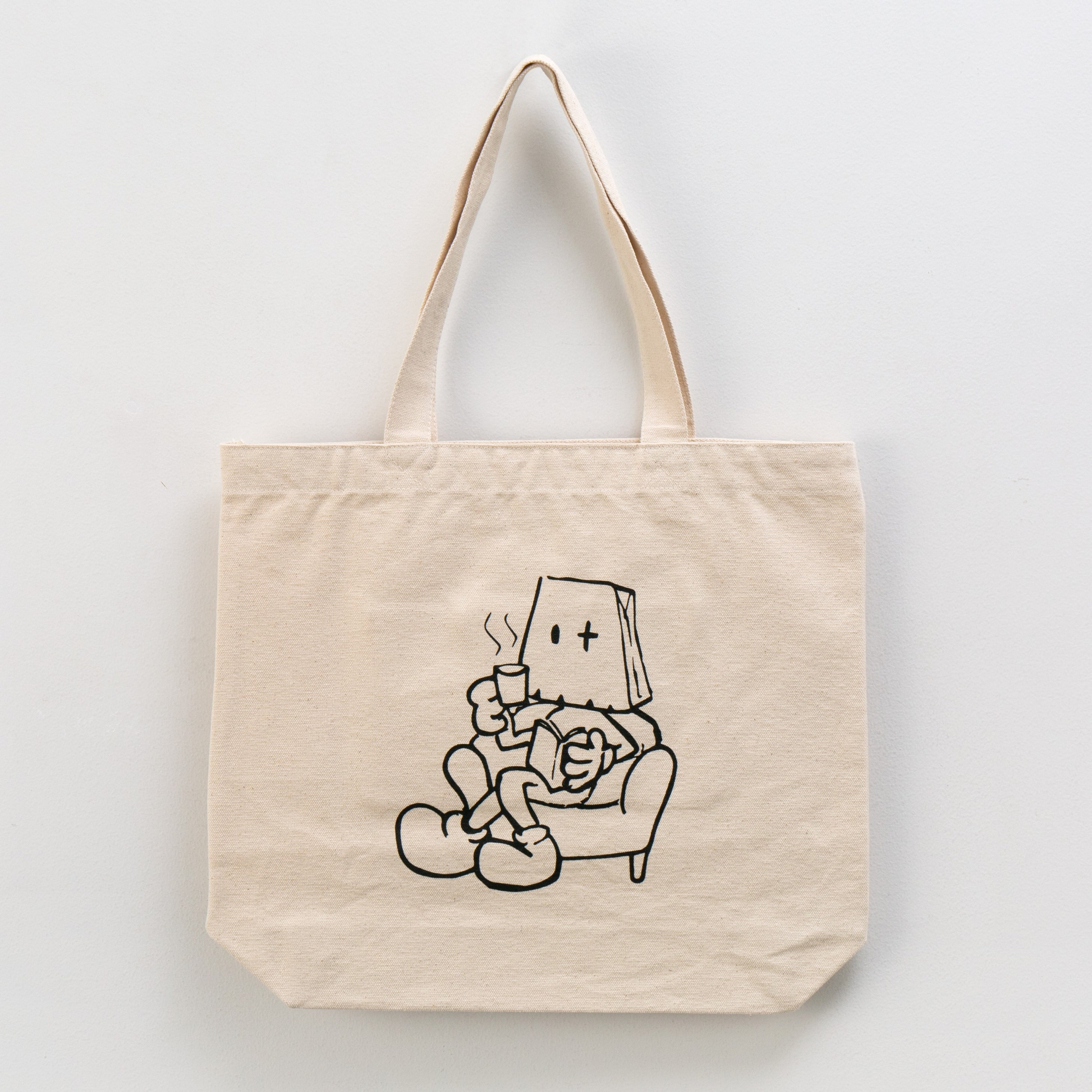 トートバッグはキャンバス地の馴染みやすい素材を使用し、本やA4ファイルがすっぽりと入るサイズ感です。普段のコーディネートにも邪魔にならないデザインです。