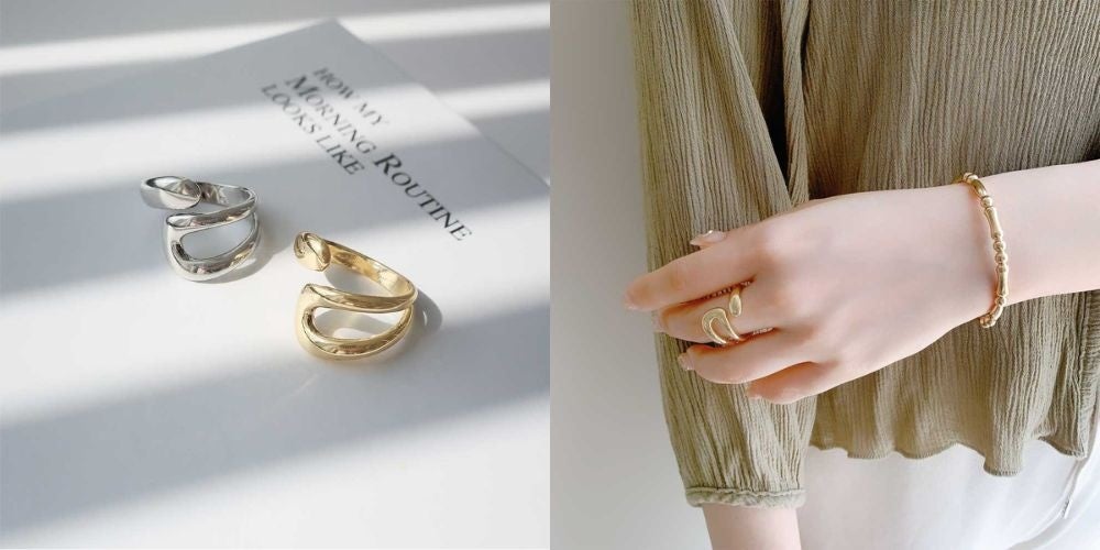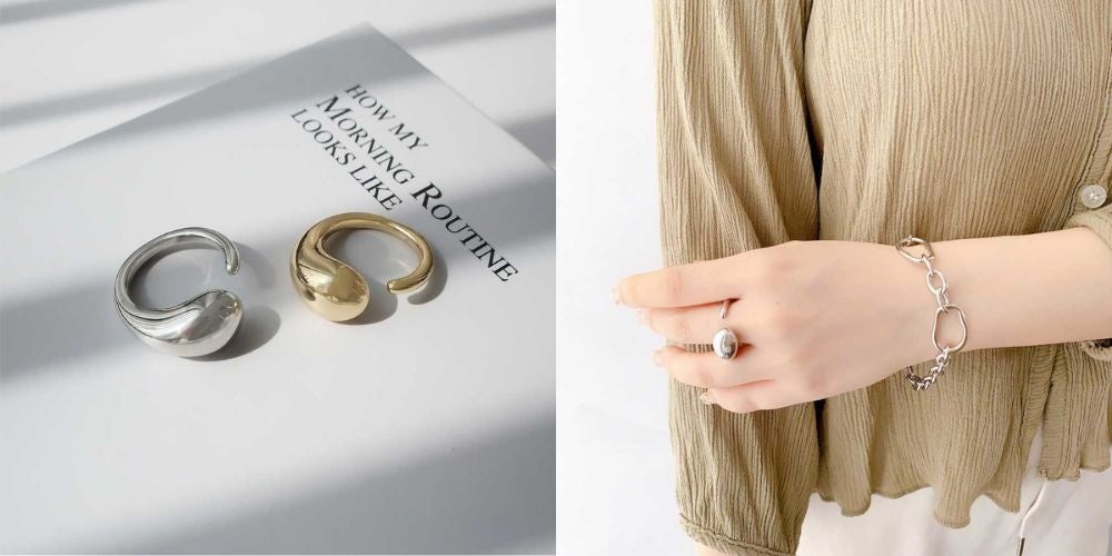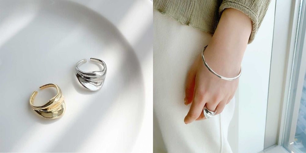 柔らかなフォルムとメタルの輝きが、手元をこなれた印象にします。