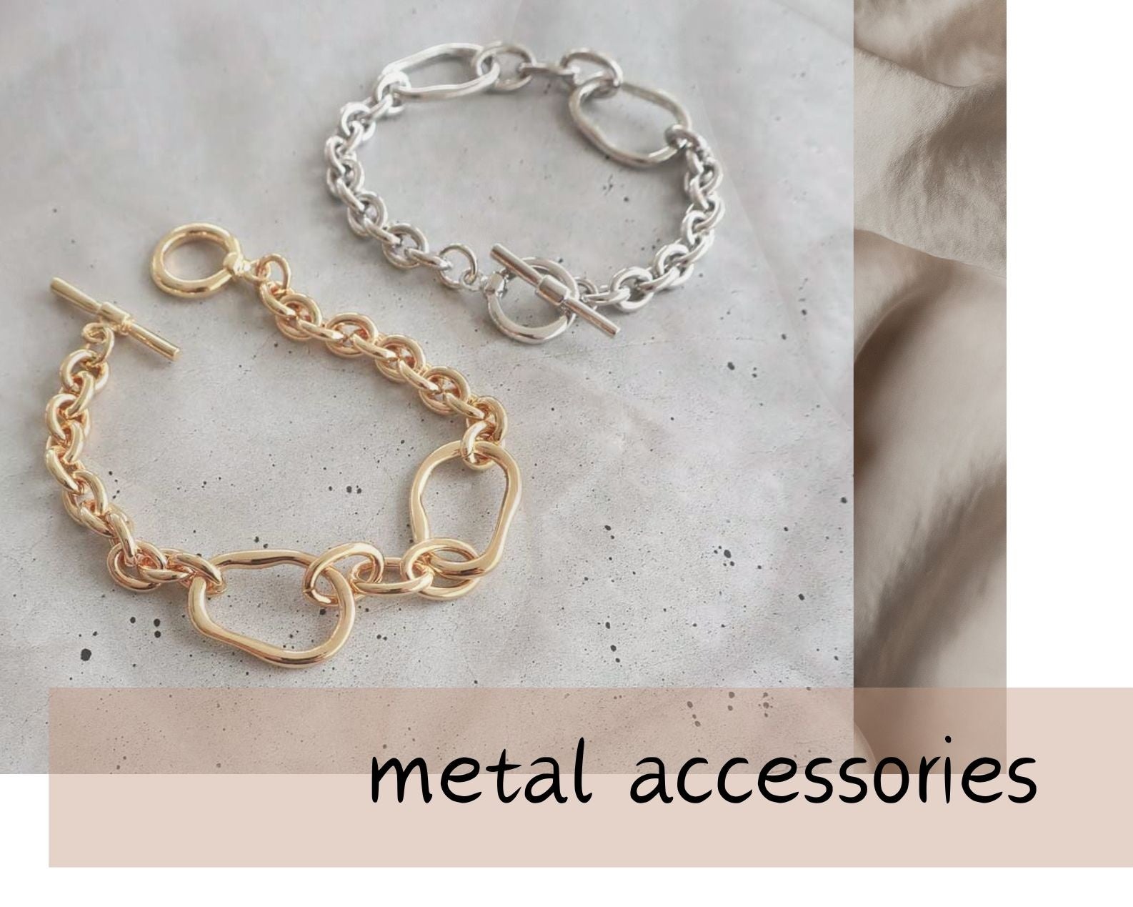 シンプルだけど単品でもしっかりコーディネートのアクセントになるメタルアクセサリー。