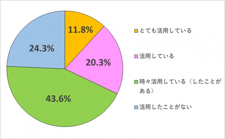 フリーWi-Fiをどのくらい活用しているかという質問に対して、「時々活用したことがある」と回答した方が43.6%で一番多いことがわかりました。また、75.7%(4人に3人)以上の方がフリーWi-Fiを活用しているようです。