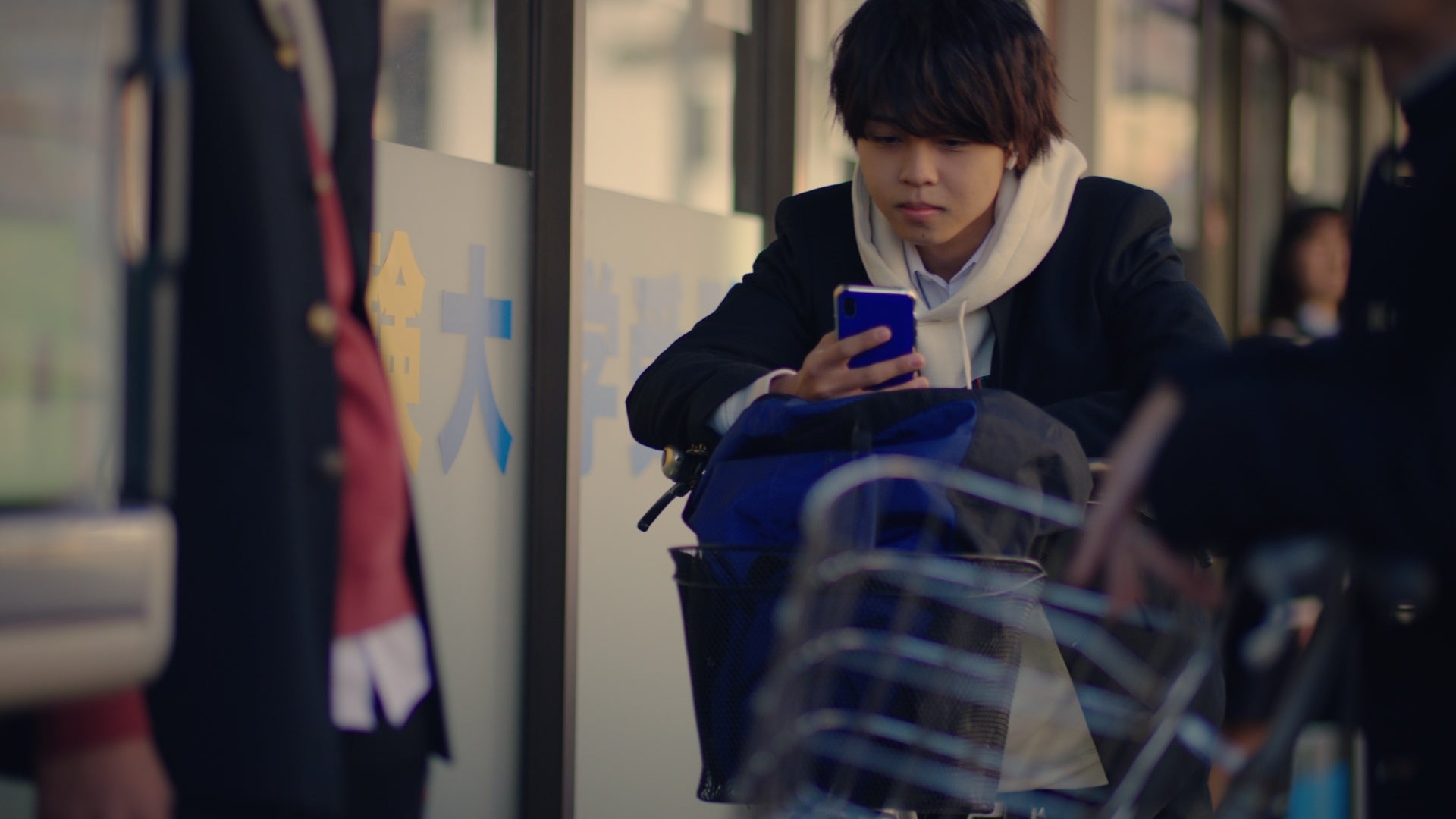 就職活動帰りの女性がその配信を聴き、誰が歌っているのかスマートフォンに目を落とす。