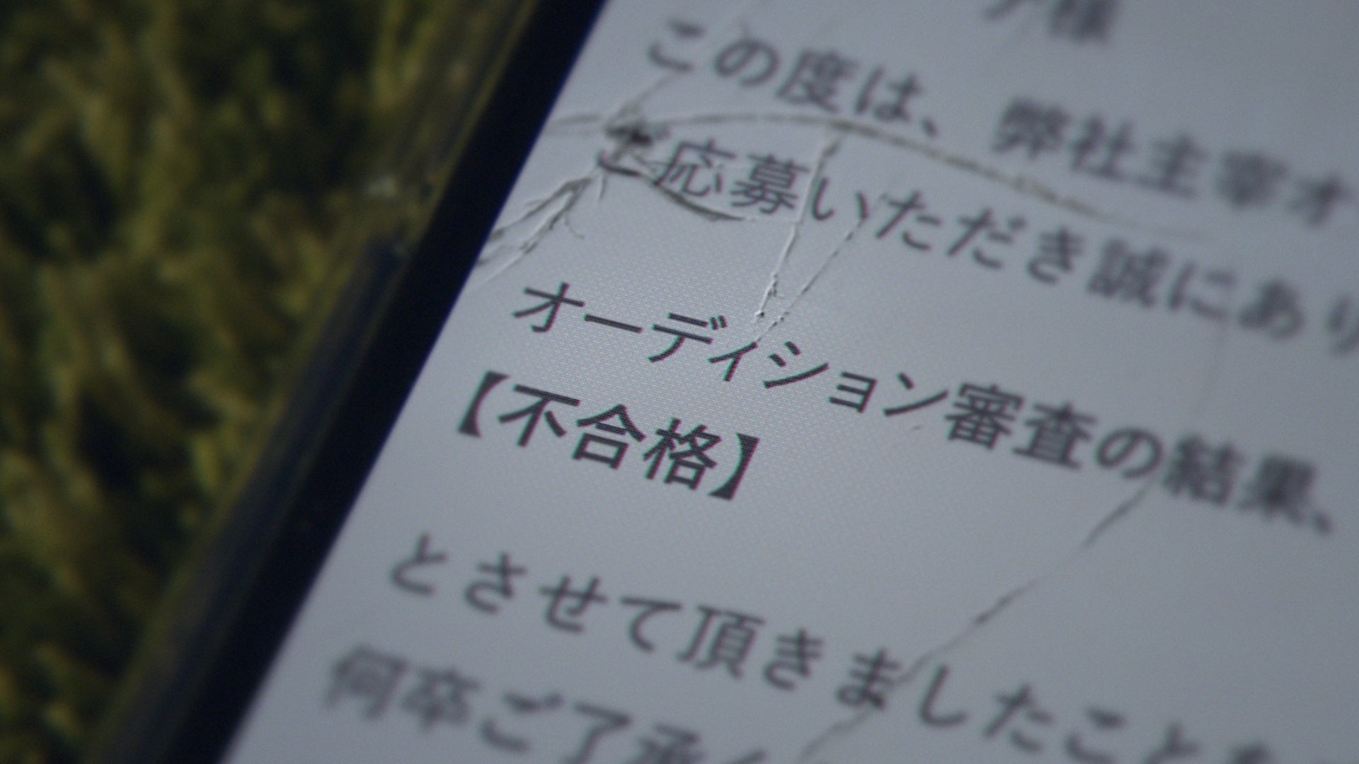 スマートフォンを眺め、落ち込むロザリーナさん。画面にはオーディションの不合格の文字が。「コカ・コーラ」のラベルを眺めた後に気持ちが切り替わったのか勢いよく飲み、ボトルを置く。