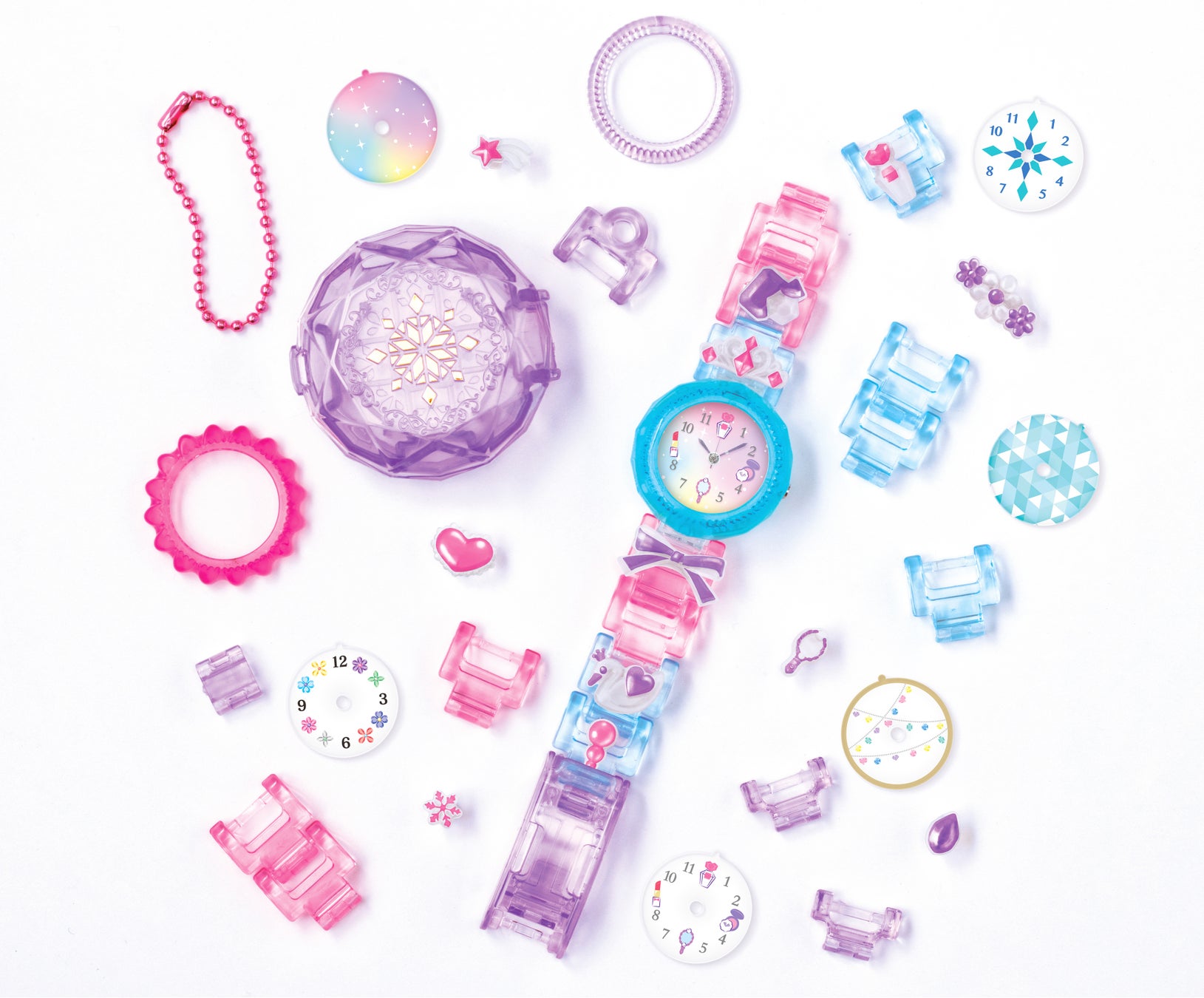 「MixWatch(ミックスウォッチ)クリスタルマリン」は、腕時計はもちろんボールチェーン付ケースに入るチャームウォッチ、ブレスレットと3つの仕様でオリジナルアイテム作りが楽しめます。