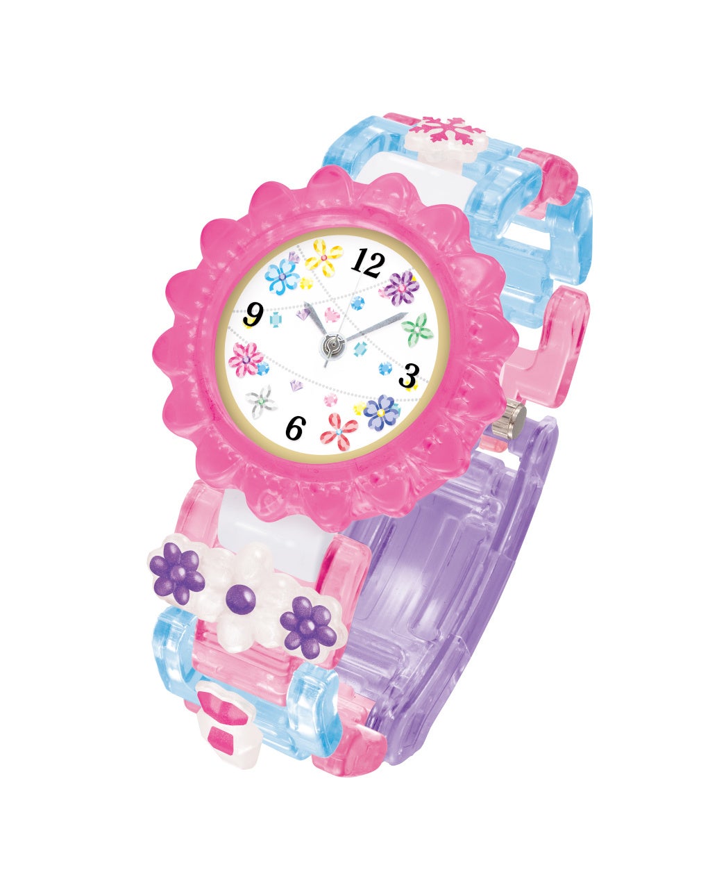 腕時計は、好きなベルトパーツ、フレーム、デザインフィルム、デコパーツを選んで時計本体につけて完成させます。各パーツの取り外しや作り直しも簡単にでき、その日のコーディネートに合わせて自分だけの様々なアレンジが楽しめます。各パーツの組み合わせにより100万通り以上のデザインになります。チャームウォッチは、コンパクトの中に本体(文字盤)を設置します。ボールチェーンを付けて鞄等につけることができます。「MixWatch(ミックスウォッチ)クリスタルマリン」は、各パーツクリアカラーでこれからのシーズンに特にオススメのオシャレアイテムです。