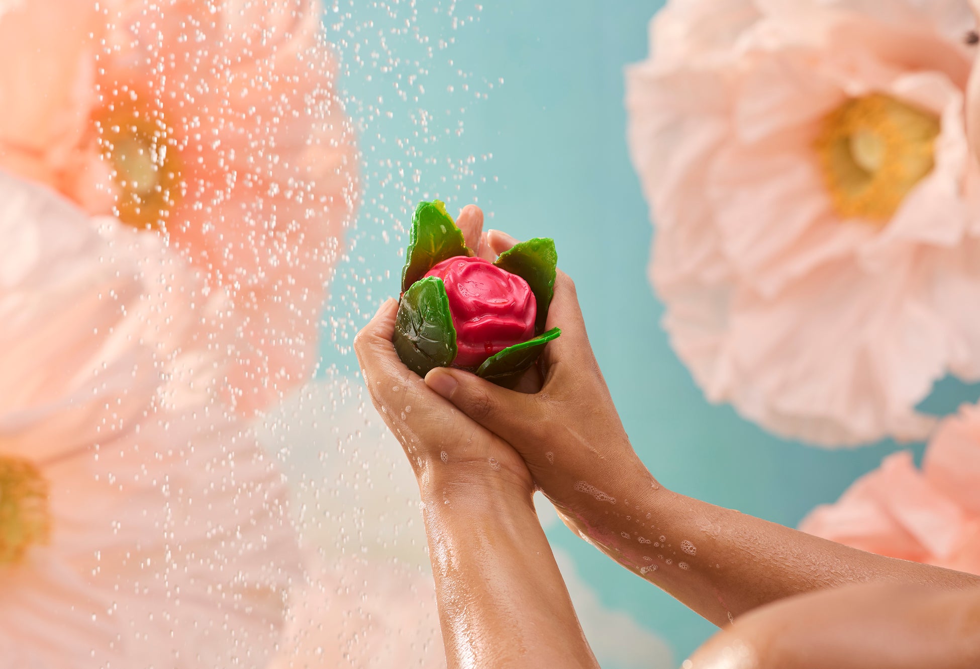 子どもの頃、母の日にはバラの花を一本贈っていたというラッシュで働くあるスタッフのエピソードから着想を得て生まれた『ロージー ソープ』は、花と葉のパーツをそれぞれ成型し、固まった後に一つひとつハンドメイドで丁寧に組み合わせています。