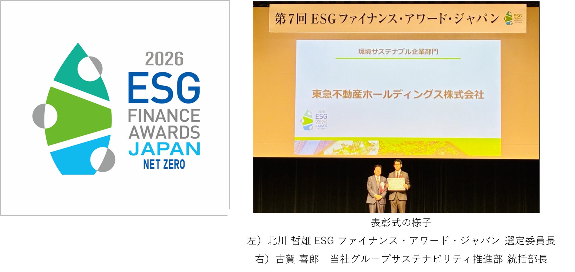 東急不動産ホールディングス株式会社(本社:東京都渋谷区、代表取締役社長:西川 弘典、以下「当社」)は、環境省が主催する「第7回 ESG ファイナンス・アワード・ジャパン 環境サステナブル企業部門」において「ネット・ゼロ賞」を受賞いたしましたのでお知らせいたします。なお、同部門での受賞は、前々回の「銅賞」、前回の「ネイチャーポジティブ賞」に続く3度目となります。