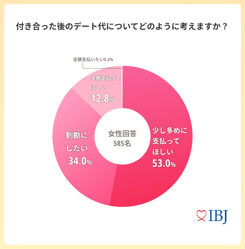 “付き合った後”のデート代について、「全額支払ってほしい」と回答した女性は1割に。