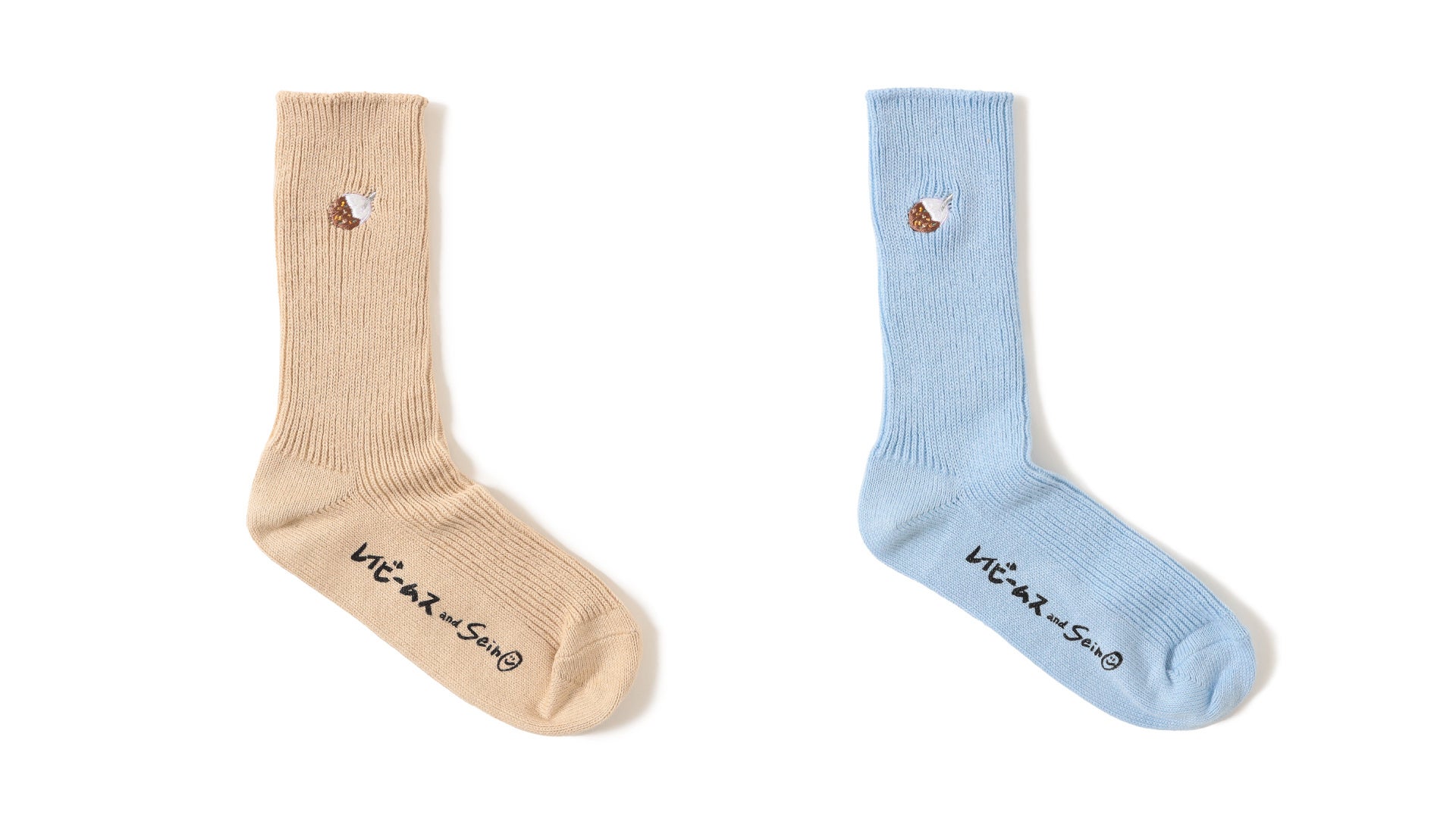 清野菜名の手描きフォントとイラストが愛らしい『おつかれーらいすTシャツ』は、1枚で着ても透けにくい厚手素材に変更し、程よいビッグシルエットのサイズ感に仕上げました。手描きカレーライスが刺繍された『かれーらいすソックス』はベージュとブルーの2色展開です。