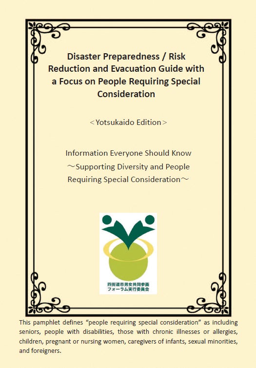 The Yotsukaido Gender Equality Organization, which works toward the realization of a gender equal society in Yotsukaido City,has produced an English edition of the “Disaster Preparedness / Risk Reduction and Evacuation Guide with a Focus on People Requiring Special Consideration”.