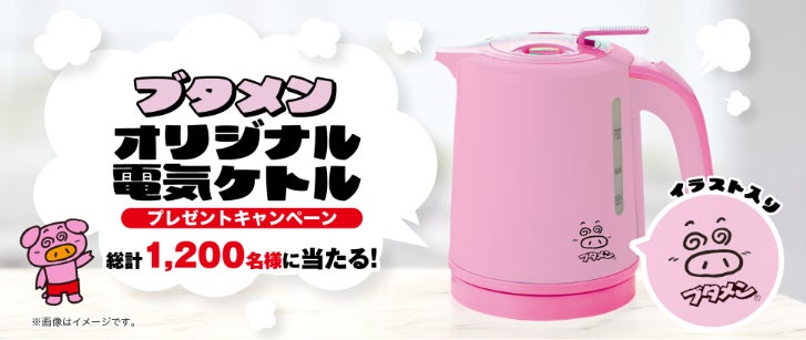 ■ブタメン専用!?ピンク色のブタメンオリジナル電気ケトルが総計1,200名様に当たる!