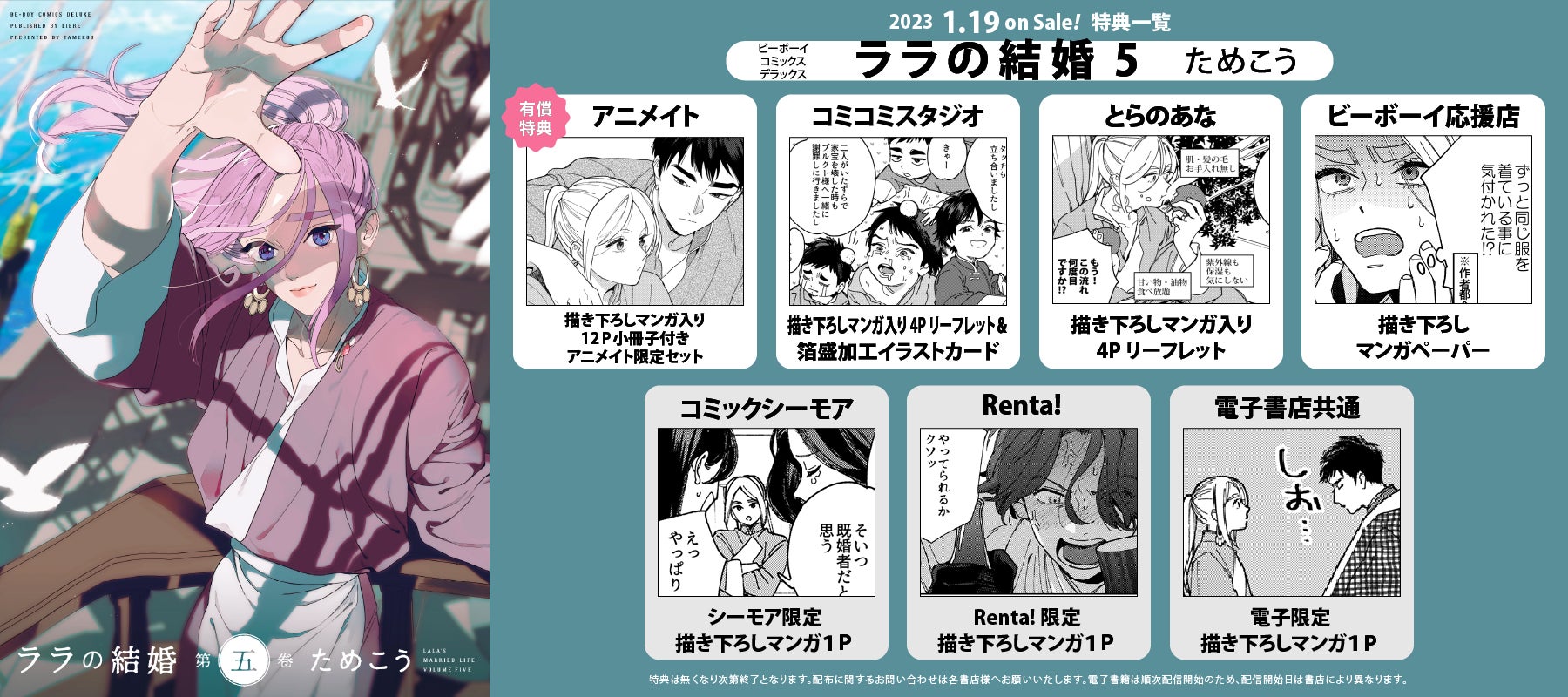 株式会社リブレ(本社:東京都新宿区、代表取締役社長:太田歳子)は、2023年1月19日にコミックス「ララの結婚 5」を発売いたします。https://www.b-boy.jp/special/lalakon/