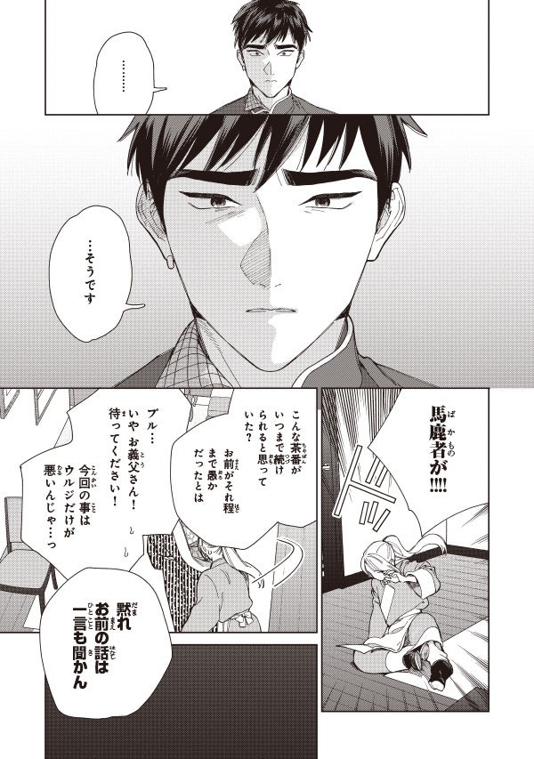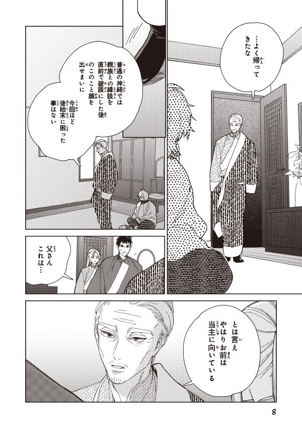 「君は彼を大切にしたかったんだな」ウルジとラムダン、二人でブルクティーン家に戻って早々、ブルクトにラムダンが男だとばれてしまった。釈明の無い二人に激怒するブルクト。ウルジは想い人と家督相続を前に選択を迫られる。一方、自分のせいでブルクティーン家が瓦解することを恐れたラムダンはある決意をして?異国の嫁入り奇譚、五巻描き下ろしは密やかな帰途の夜のお話。
