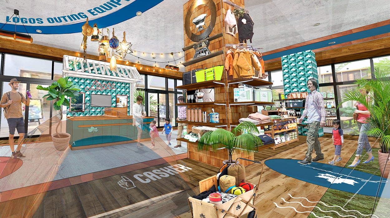 また、本店舗はシーサイドに位置していることから、店内は「海」をテーマに、これまでのロゴスショップにはない爽やかなデザインを施しており、ワクワクする空間でお買い物をお楽しみいただけます。