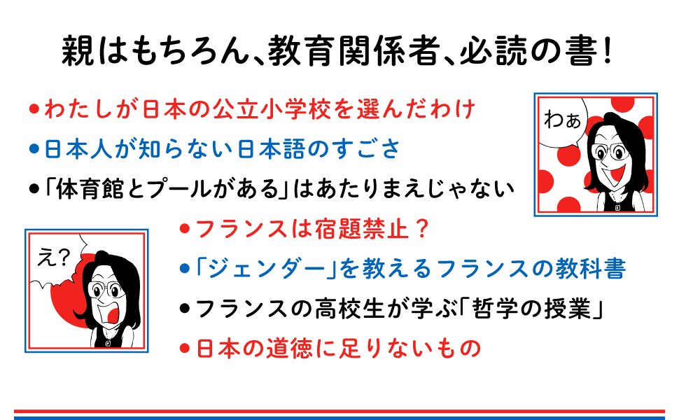 この大好きな日本と故郷であるフランス両者にとって教育や子育て環境が少しでも良いものへ変わっていく一歩に本書が貢献できれば、こんなに嬉しいことはない。
