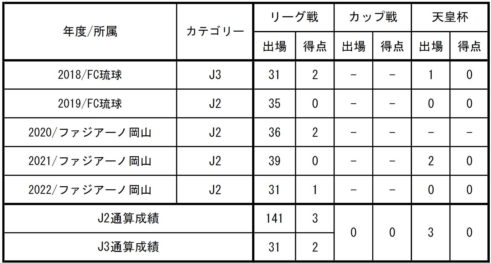□出場記録(2022シーズン終了時点)