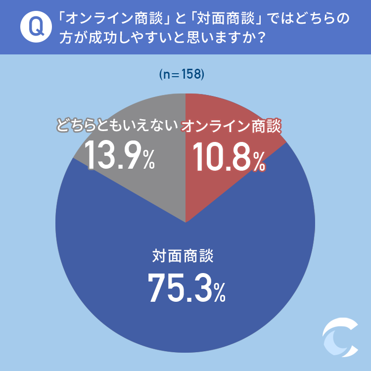 「対面商談」と回答した方が75.3%と、圧倒的に多い結果になりました。