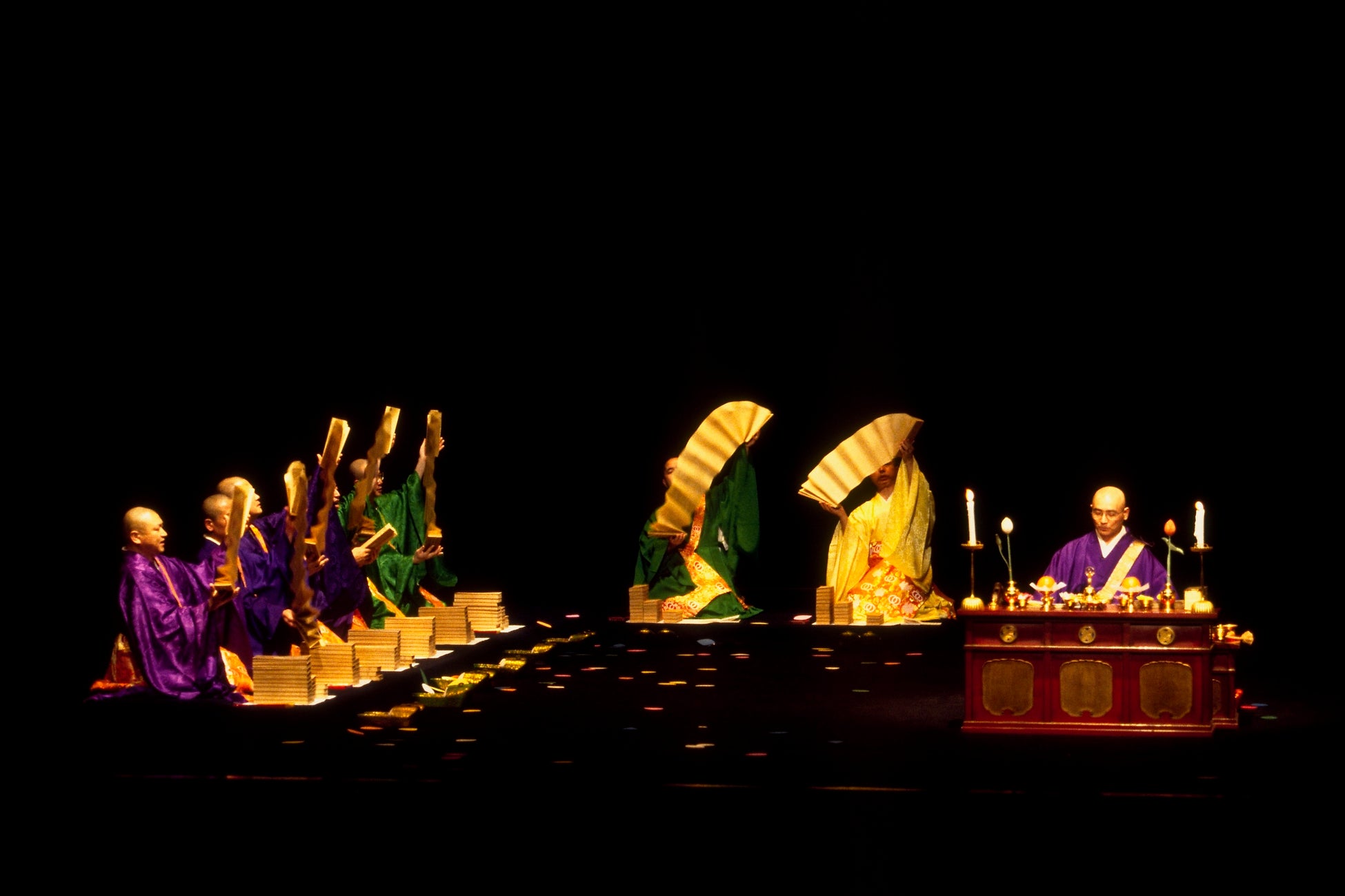 本公演には、四季折々の花々が堪能できる「花の御寺」としても有名な総本山長谷寺と、真言宗豊山派の声明を支える迦陵頻伽聲明研究会の僧侶の皆様にご出演いただきます。諸悪の根源を払い、人々の平和と幸せを願う、大迫力の「降魔(ごうま)の法会」を大劇場舞台に再現します。