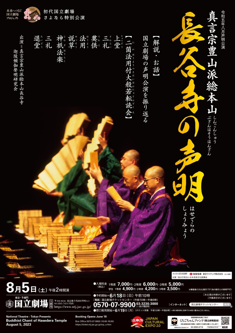 【初代国立劇場さよなら特別公演】8月声明公演『長谷寺の声明』舞台芸術として声明を紹介し続けてきた初代国立劇場で最後の演目は“宙を舞う経典と圧倒的な大音声”!