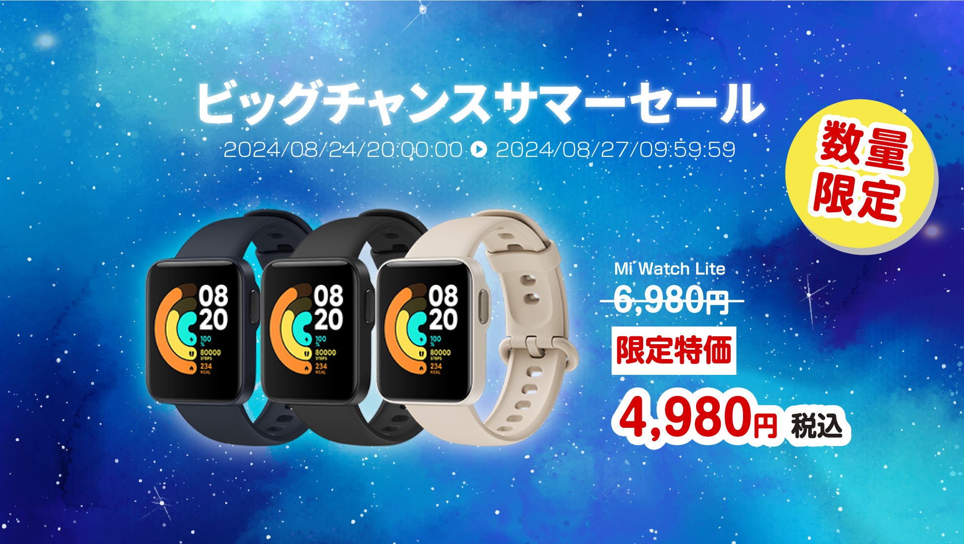 楽天「Show !t」Xiaomi Mi Watch Lite最終在庫処分!数量限定、2,000円オフ!ポイント10倍!こちらの以降の入荷はありません。8月24日開始の楽天スーパーセールにて。