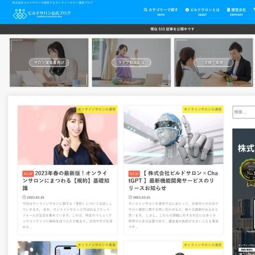法人向け買い切り制オンラインサロン制作・開発業務を専門で承る株式会社ビルドサロン(本社:東京都新宿区、 代表取締役:上村 十勝)は、2023年3月20日、オンラインサロン運営者向け公式ブログの記事数500件突破を発表しました。