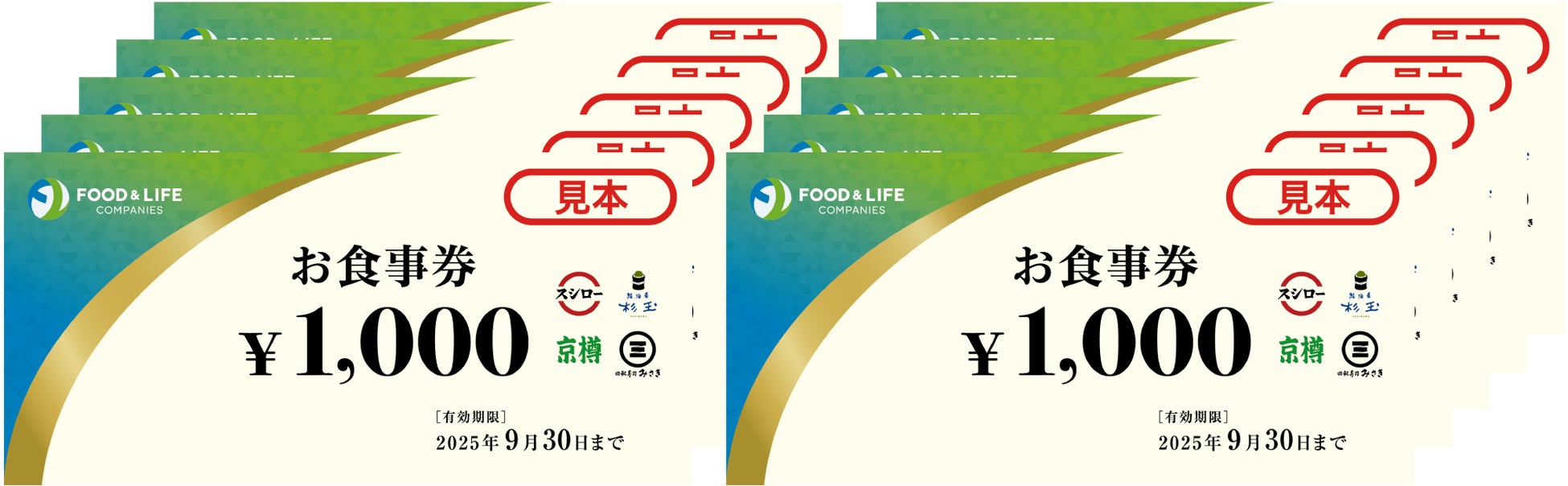 「スシローで使用できるお食事券10,000円分」×10名さま