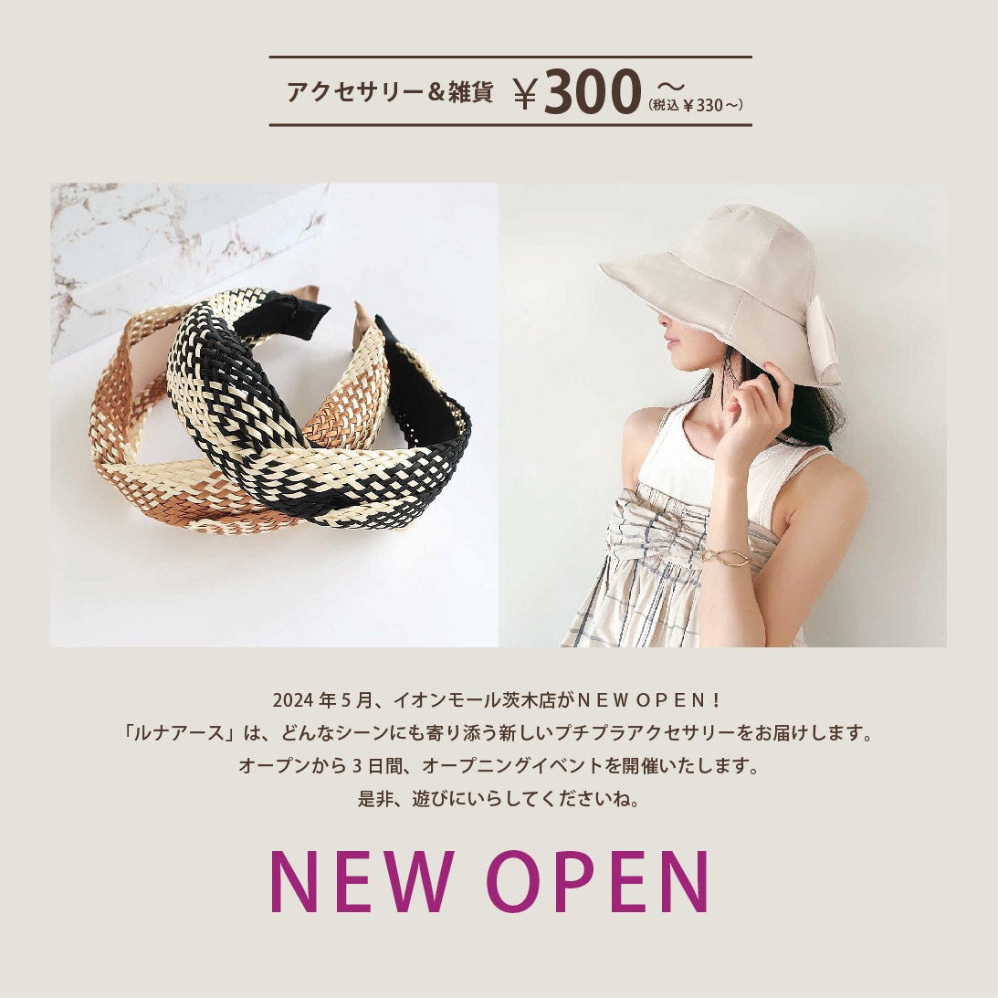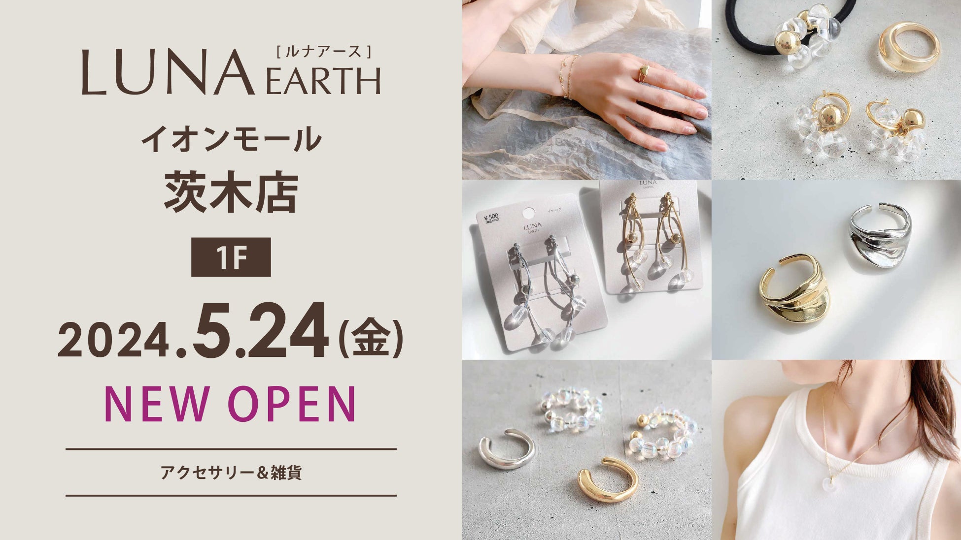 330円(税込)~アクセサリーブランド「LUNA EARTH」イオンモール茨木店が、5/24(金)にオープン