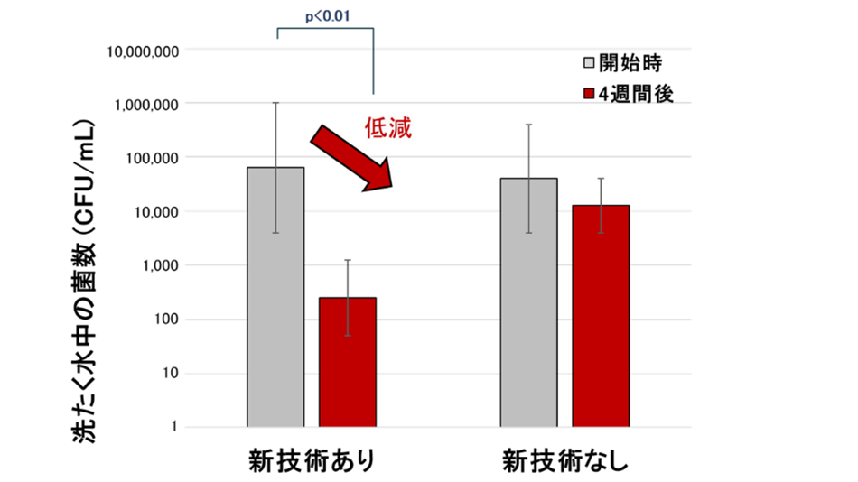 洗たく槽のバイオフィルム内の菌への除菌効果*1および洗たく水内の菌数低下を確認