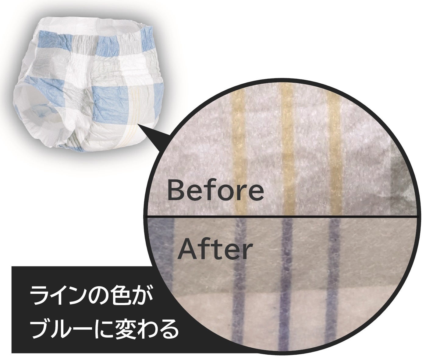 ・ラインの色がブルーに変わるおしっこサイン付き。