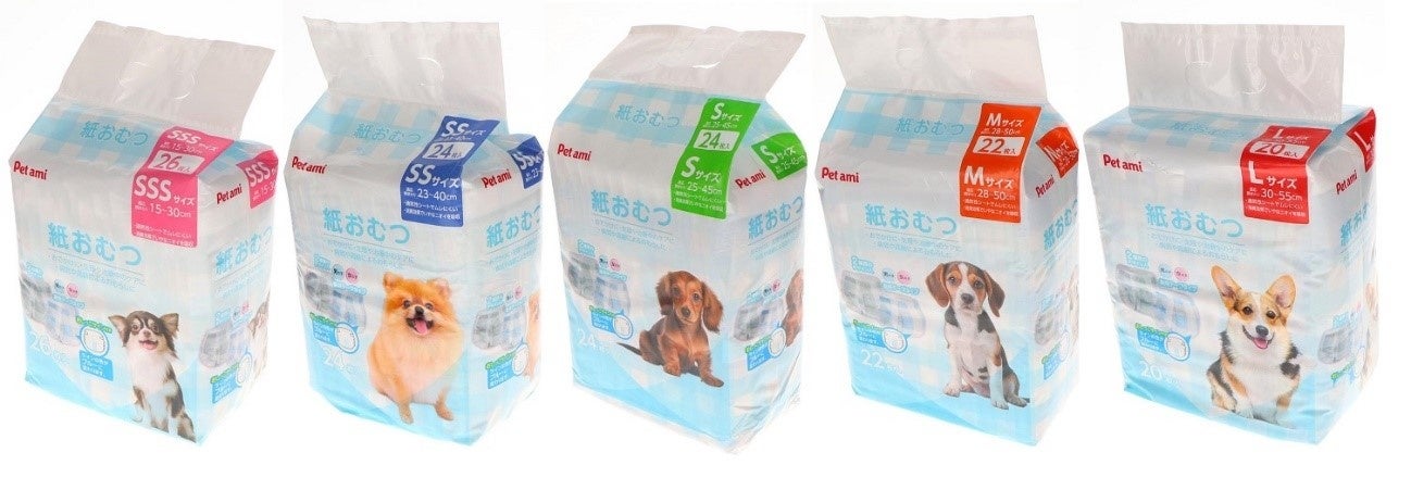 愛犬とのお出掛け、介護やおもらし対策に、「Pet ami」のペット用の紙おむつがリニューアル