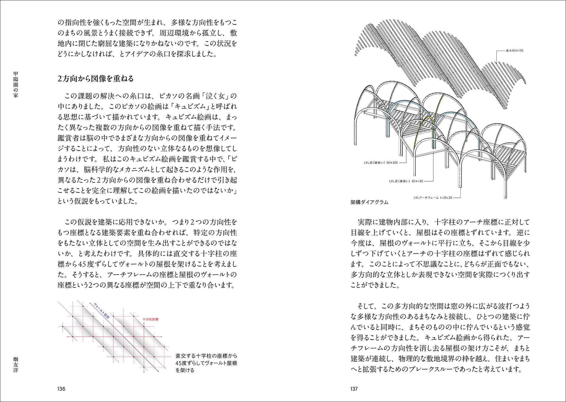 正面のない多方向的な組木アーチ(甲陽園の家)