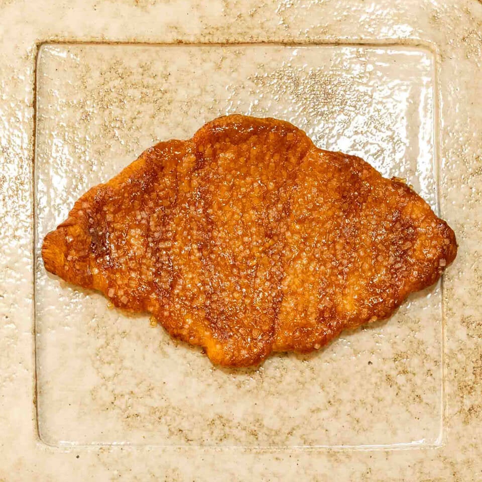 SR渋谷戦の対戦焼きは話題のぺったんこのクロワッサン!クロワッサンをぺったんこにしてサクモチに焼き上げました。濃厚なバターの風味が楽しめます。ガレット・クロワッサンを食べて渋谷戦を応援しよう!