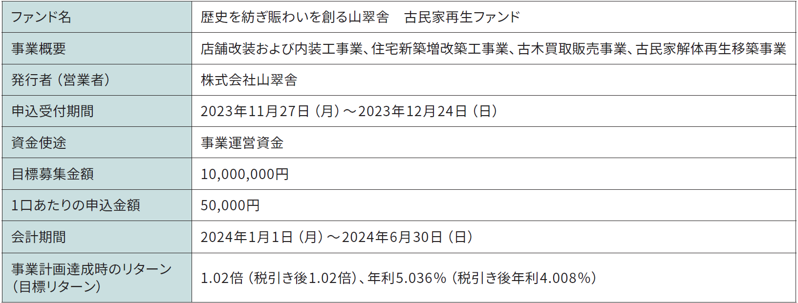 投資型クラウドファンディング募集概要