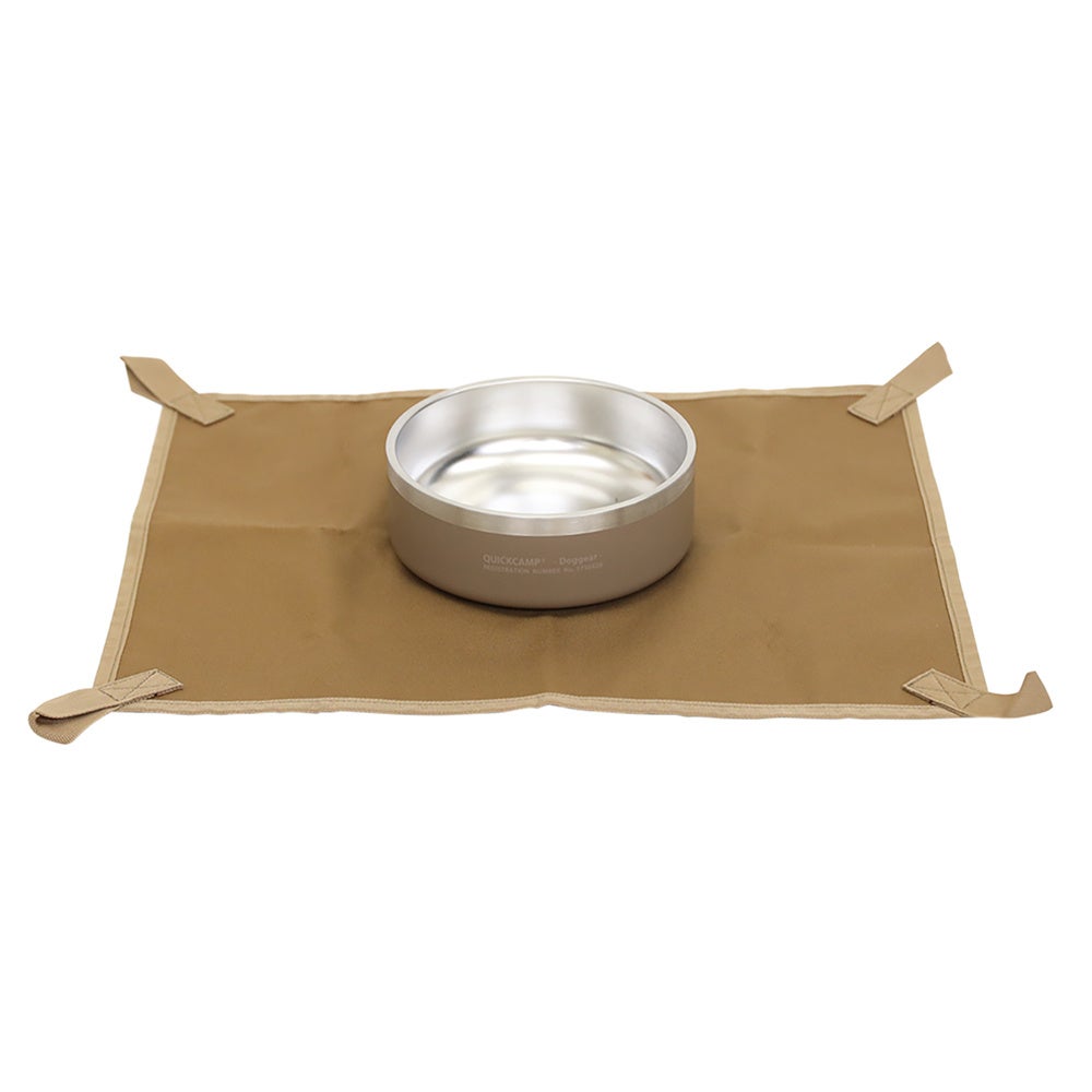 フードボウルのサイズに合わせた防水シートが付属されています。フードボウルの下に敷いてお使いいただくことで、床を汚すことなく食べこぼしを手軽に掃除できます。シートの四隅にはペグ用のループが縫い付けられており、屋外で使用する際にはシートが風で飛ばないように、しっかりと地面に固定することができます。