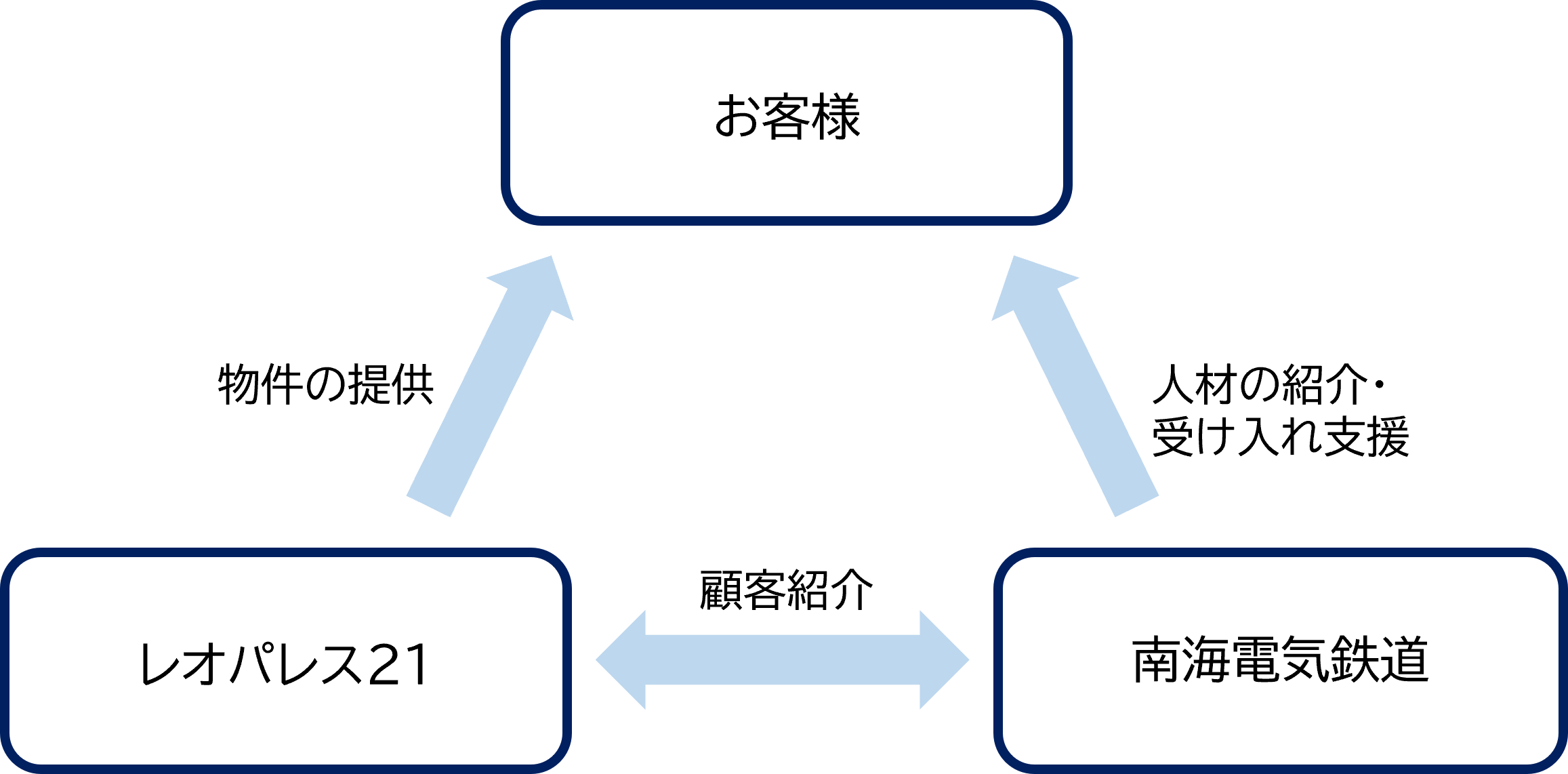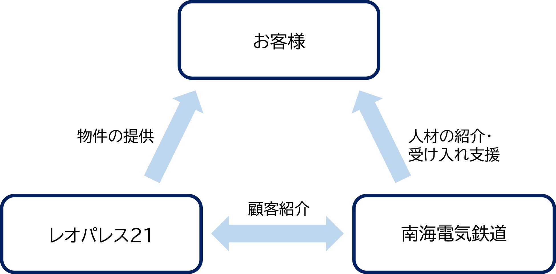 「外国人との共生」を推進する南海電鉄と協業し、企業の外国人人材受け入れとその住まいをサポートすることで、持続可能なまちづくりの実現により一層の貢献を図るため、このたび業務提携の締結にいたりました。