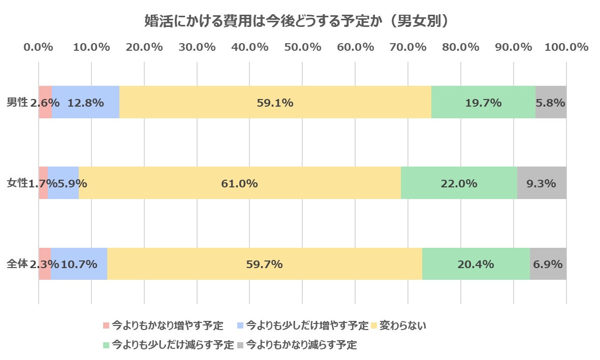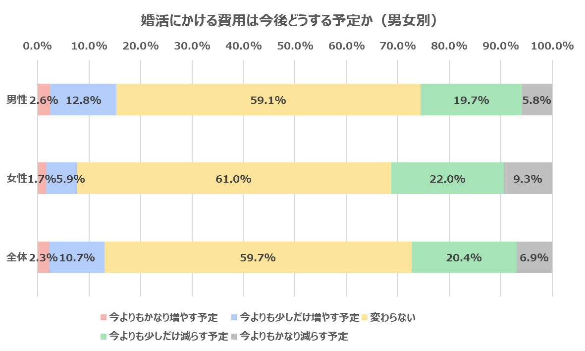 最後に、物価が高騰する中で、婚活全体にかける費用は今後どうする予定かお聞きしました。