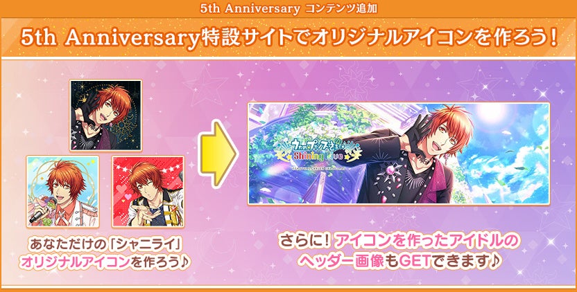 その他にも「5th Anniversary キャンペーン」として、「お気に入りの衣装アンケート」「5th Anniversaryミッションイベント 第1弾」期間限定ロケ「うたの☆プリンスさまっ♪ Shining Live 5th Anniversary」などを実施しております。