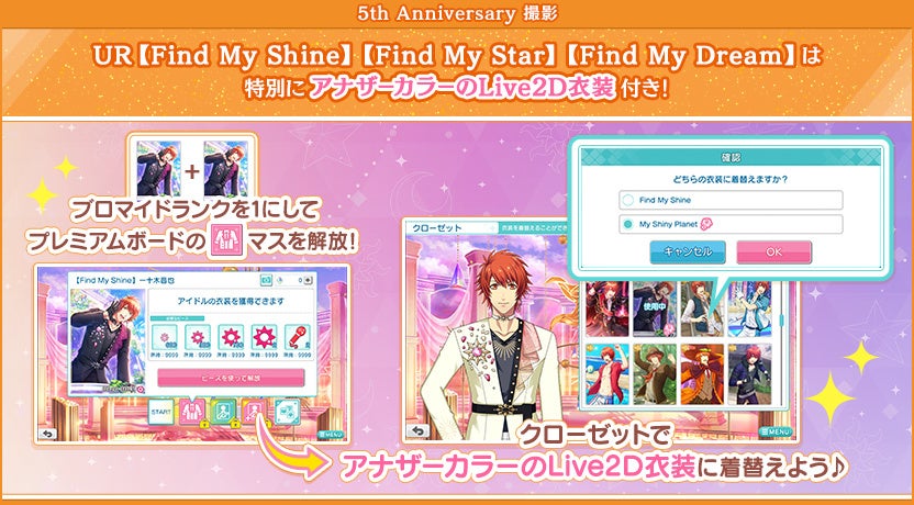 また、【Find My Shine】【Find My Star】【Find My Dream】のLive2D衣装は特別仕様!