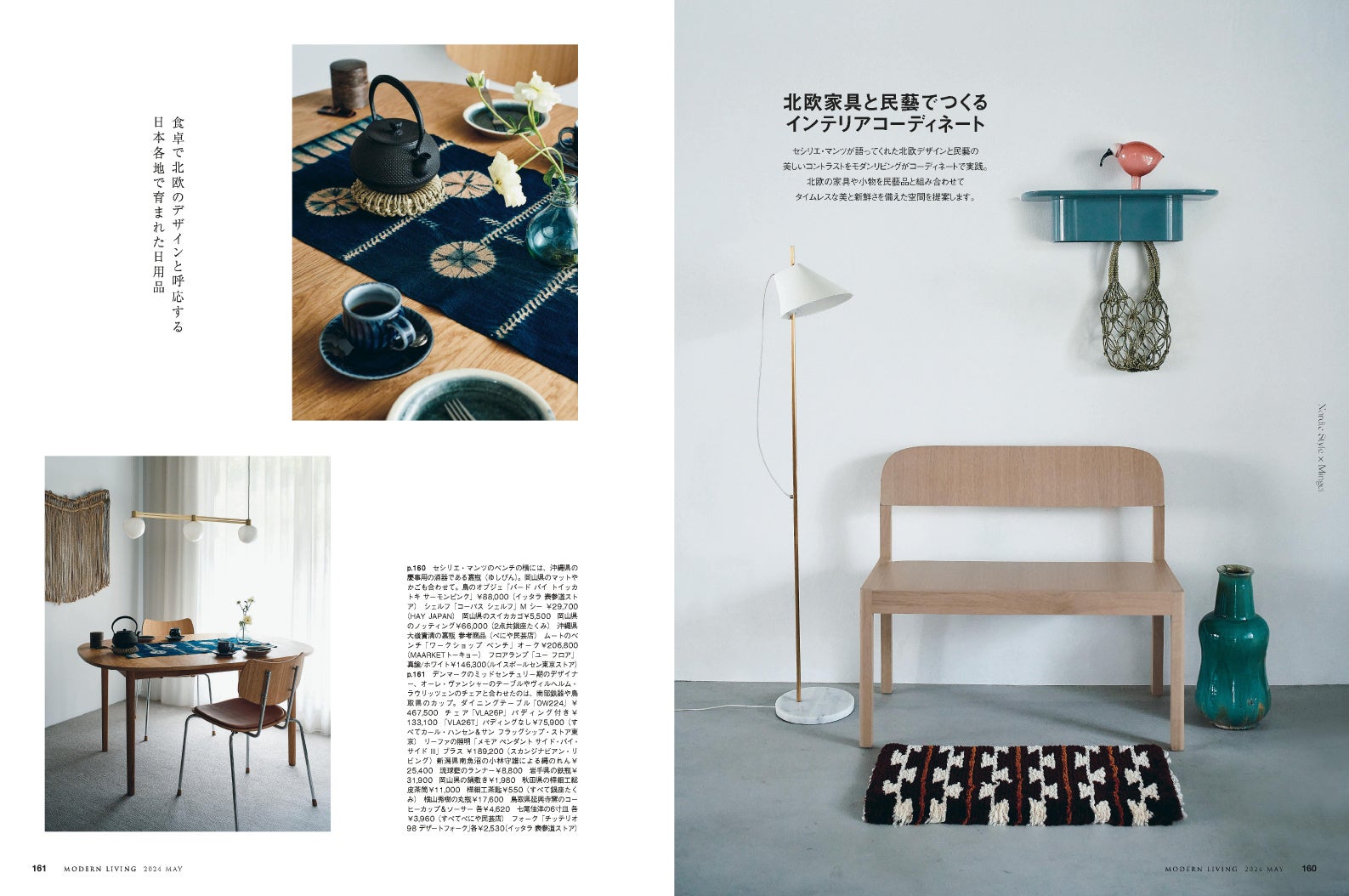 北欧デザインと民藝の美しいコントラストをモダンリビングがコーディネートで実践。北欧の家具や小物を民藝品と組み合わせてタイムレスな美と新鮮さを備えた空間を提案します。