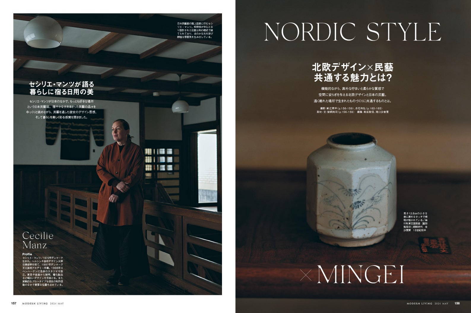 セシリエ・マンツが日本でもっとも好きな場所という日本民藝館で、穏やかな光をまとった民藝の品々をゆっくりと眺めながら、民藝を通した彼女のデザイン思想、そして暮らしを美しく彩る感覚を聞きました。