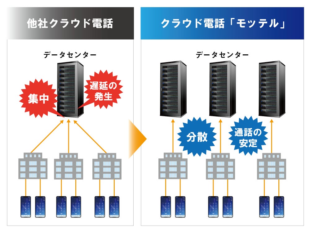 時間帯により全国から集中していた通話トラフィックを中国地方5県専用のクラウドデータセンターを開設し、分散することにより、いままで以上に安定した通話環境を確保できるようになります。