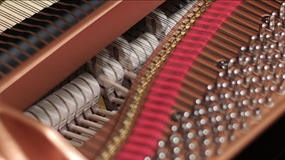 『サイレントピアノ』は、アコースティックピアノの構造はそのままに、独自の消音機能を付加したピアノです。消音モードに切り替えると、鍵盤を弾いた際にハンマーの動きが打弦直前の位置で止まり、弦が鳴らない仕組みとなっています。センサーで演奏者の表現を精緻に検出し、電子音源をヘッドホンから発音することで、消音時でもアコースティックピアノさながらの豊かで快適な演奏ができます。