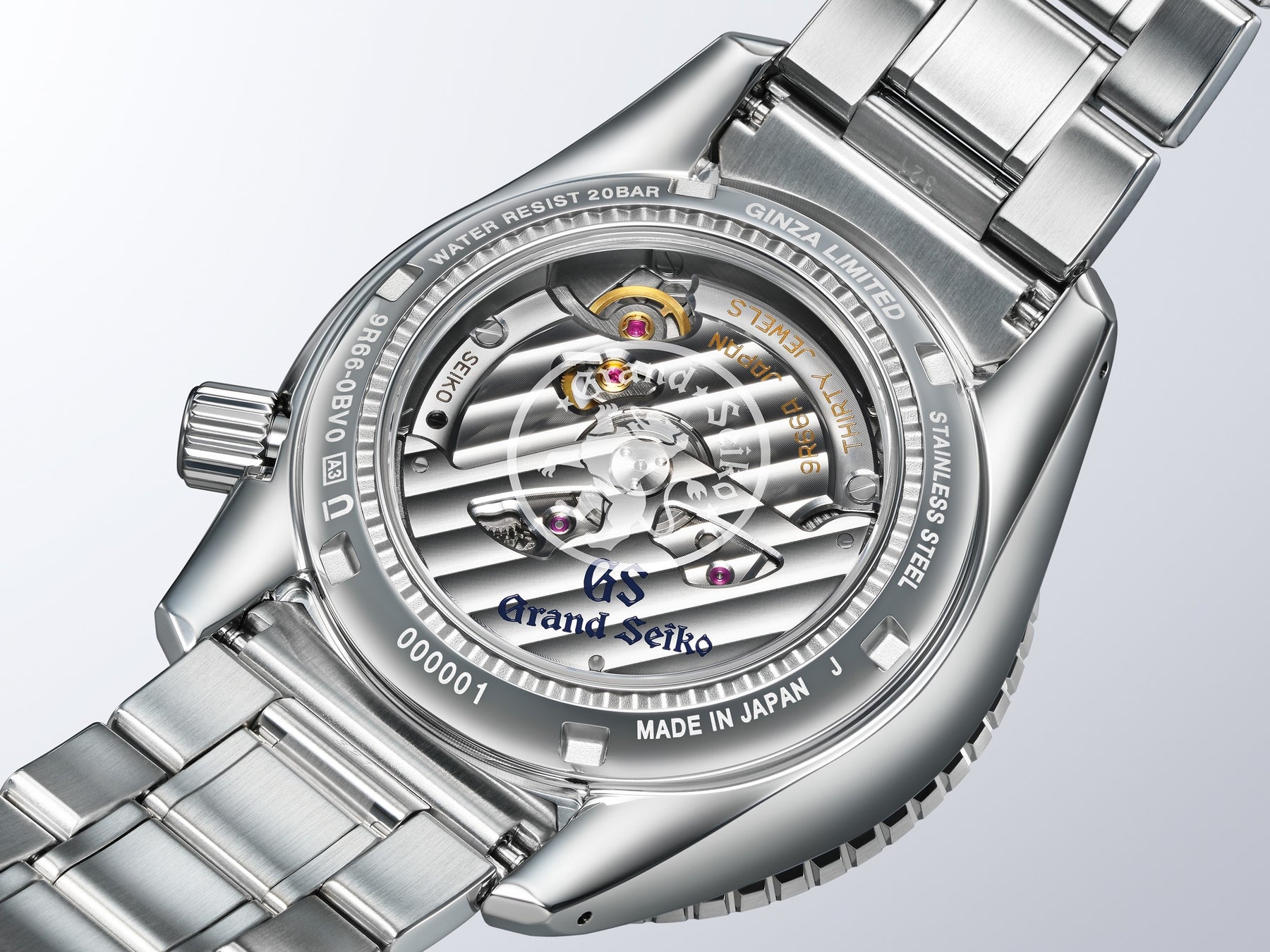 限定モデルならではの特別仕様として、レギュラーモデルではメタルバックの裏ぶたにシースルーバックを採用し、銀座限定モデルの証である「GINZA LIMITED EDITION」の文字がさりげなく表記されています。