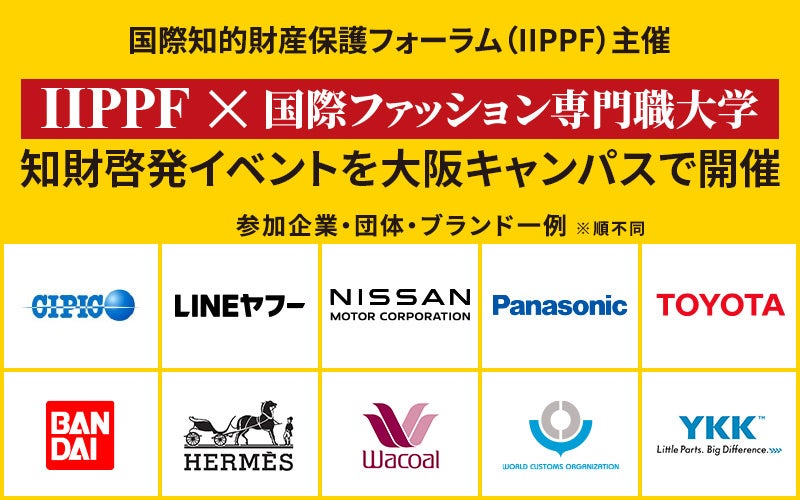 国際知的財産保護フォーラム(以下、IIPPF)主催による知財啓発イベント「世界のニセモノ対策 最前線! ―知財で目指す、より良い社会―」が、国際ファッション専門職大学 大阪キャンパスにて、2024年1月29日(月)に開催されます。