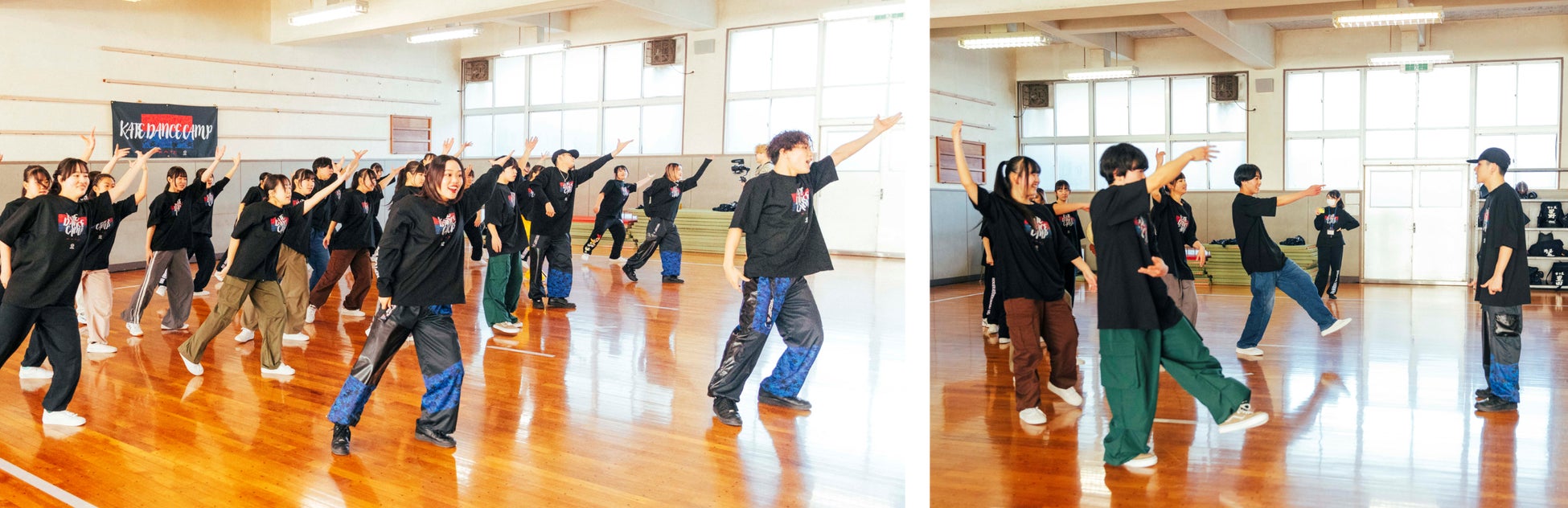 ダンスは、音楽はもちろんですがメイクやファッションなどビジュアルからもインスピレーションを受けて表現します。高校生ならではの柔軟な創造力と愉快な表現力に、僕らも含めその場にいた全ての方々がワクワクしていたと思います。ダンスもメイクも自由なものだからこそ、見る人も自分自身も笑顔になれる。このワークショップはダンスが上手くなったり、かっこよく踊れるようになったりするだけではなく、テーマに合わせて見ている人を楽しませようとする、そしてグループ内でアイデアを出し合うことで自己表現の幅を広げることができる、そんな学びの場でもあるのだと思いました。