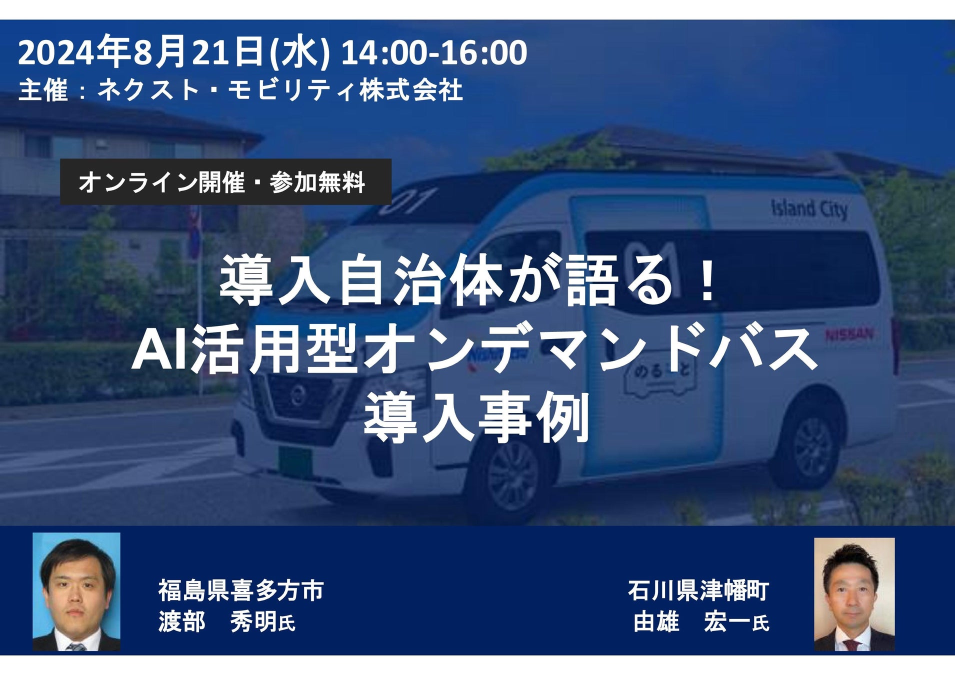 【8月21日開催】無料オンラインセミナー「導入自治体の生の声〜AI活用型オンデマンドバス導入実践編〜」