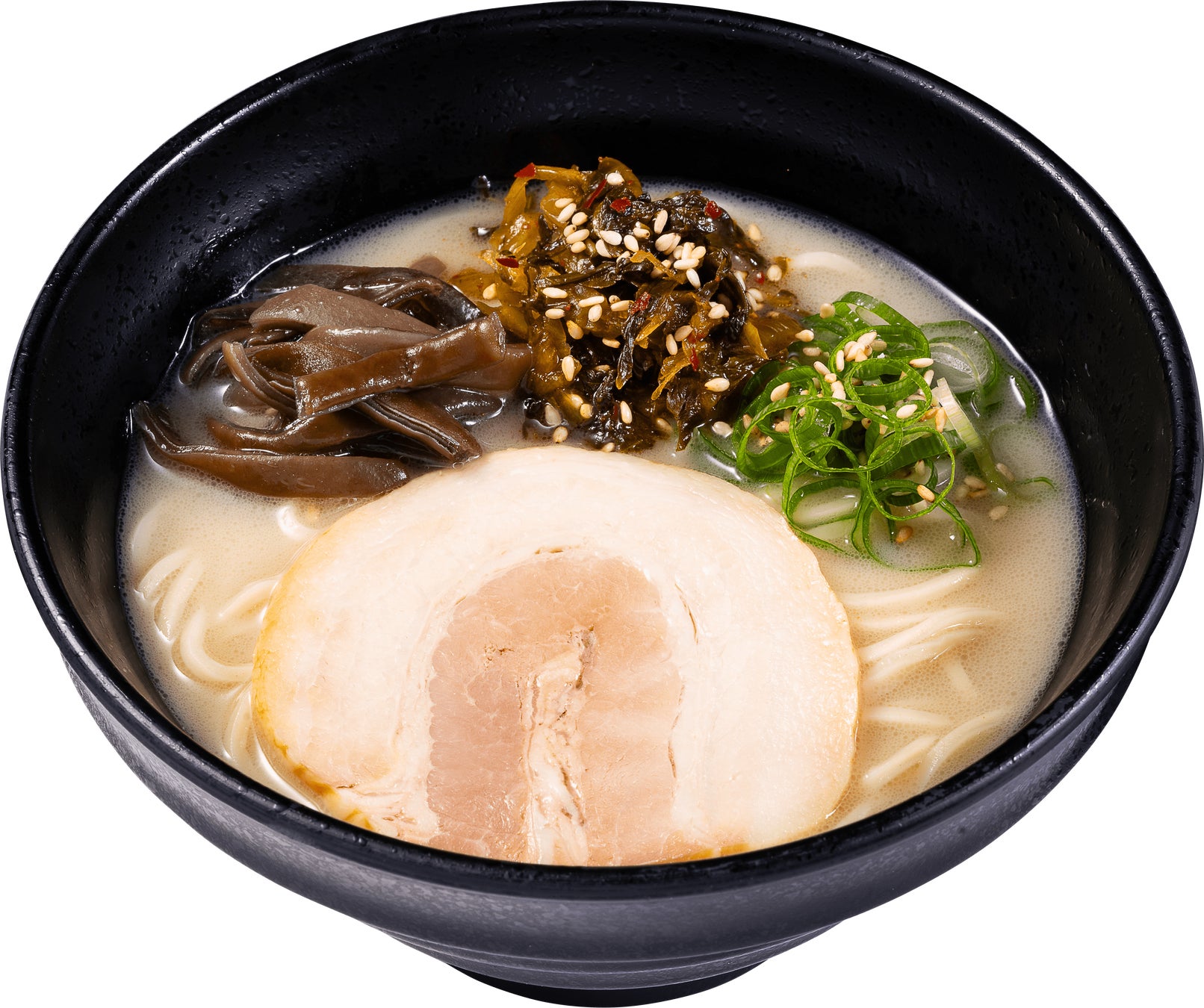 豚骨ラーメンならではの、きくらげ・辛子高菜・チャーシューをご用意しました。