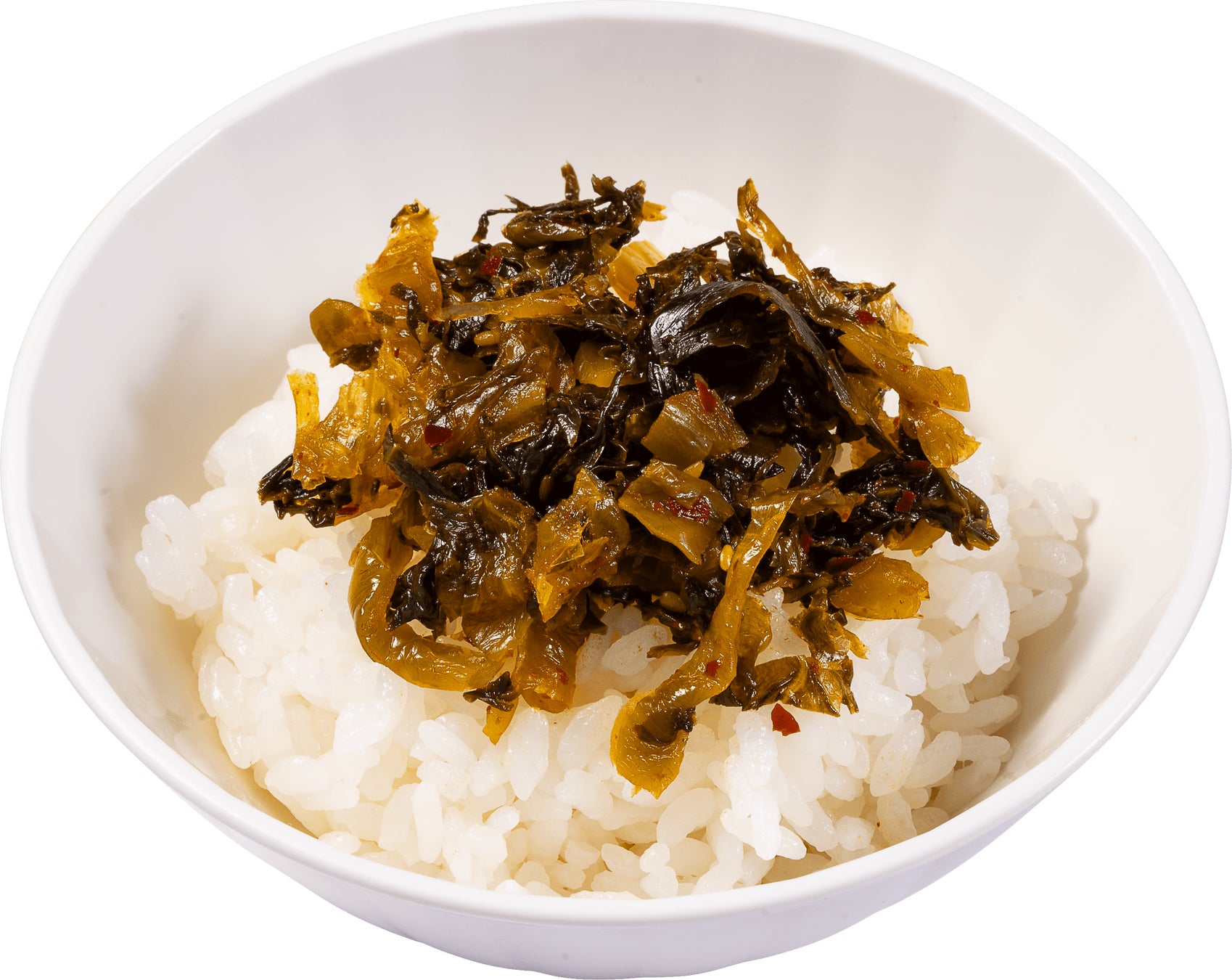 かっぱ寿司自慢のシャリを入れると、辛子高菜のピリッとした辛みと濃厚な豚骨スープの旨みを、最後の一滴まで味わえます。